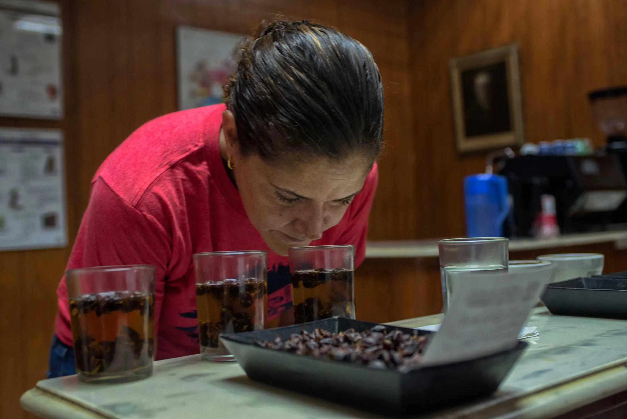 Aida Batlle 在萨尔瓦多圣安娜进行优质的咖啡果茶品尝。
