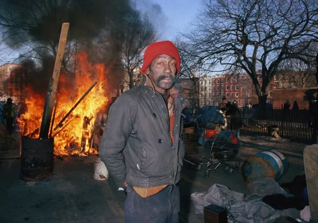 在1960年代,汤普金斯广场公园成为了那些被房价挤出的人的避难所。到那时,已经有一群相对固定的无家可归者在这里生活。随着1970年代下东区的投资减少,这一趋势有所增加。到1984年,我们看到了绅士化的开始,市长埃德·科赫将重新夺回和清理城市公园作为政策——“清理”曼哈顿。其目的是将无家可归者和公园周围建筑中的 squatters 驱逐出去。