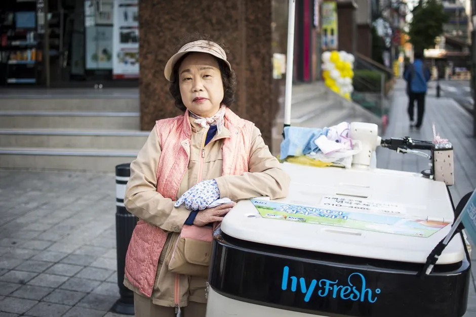 我在首尔待了几周,和一群来自蒙大拿大学新闻学院的 学生记者 一起。作为新来者,我们很难不对这个庞大而快速发展的都市的光鲜、科技和规模感到惊叹。但我们也在记住我们的承诺,关注这座城市的实际支柱——那些维护者,正如CityLab的劳拉·布利斯所写, 让世界运转。这就是每个酸奶车背后的阿姨们,她们的收入仅为 四分之一,以及那些出售新鲜紫菜包饭的阿姨们,这种米卷是早晨通勤者的主食,还有每天运送数百万通勤者的司机和列车员。这也是那些在黎明时分扫地的人们,他们基本上让昨天的垃圾在一夜之间消失。