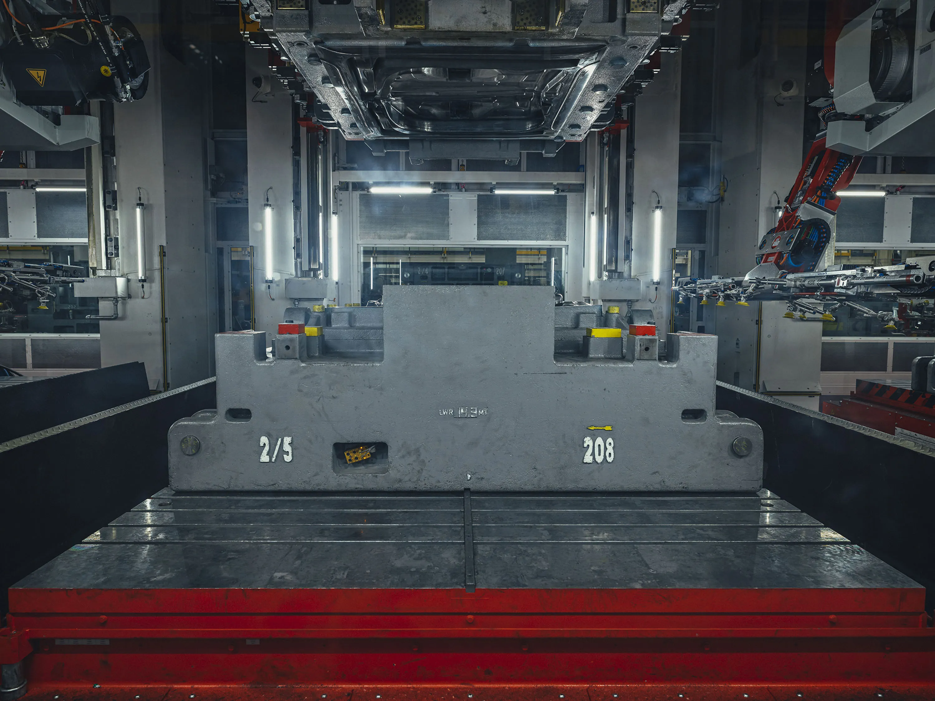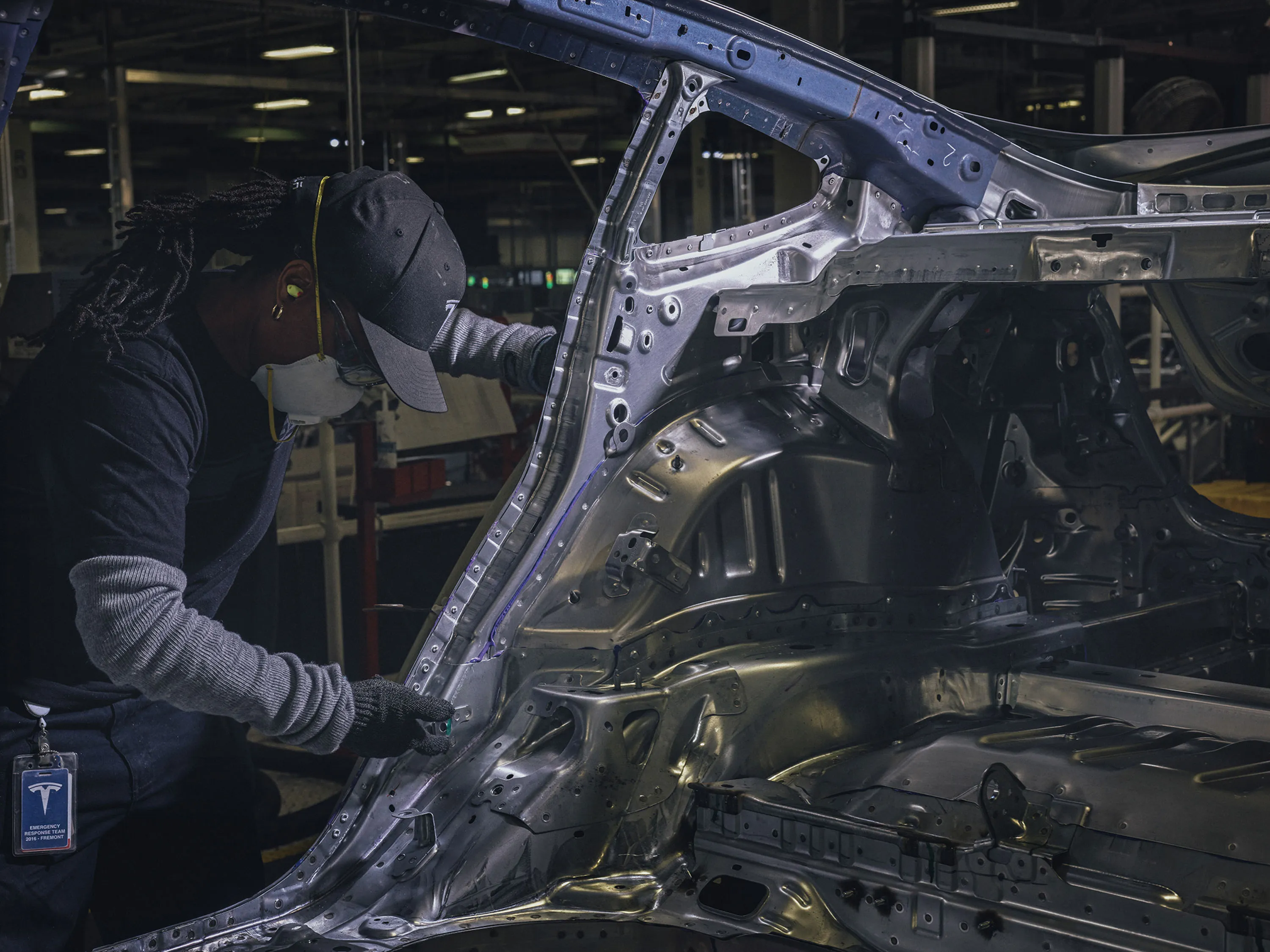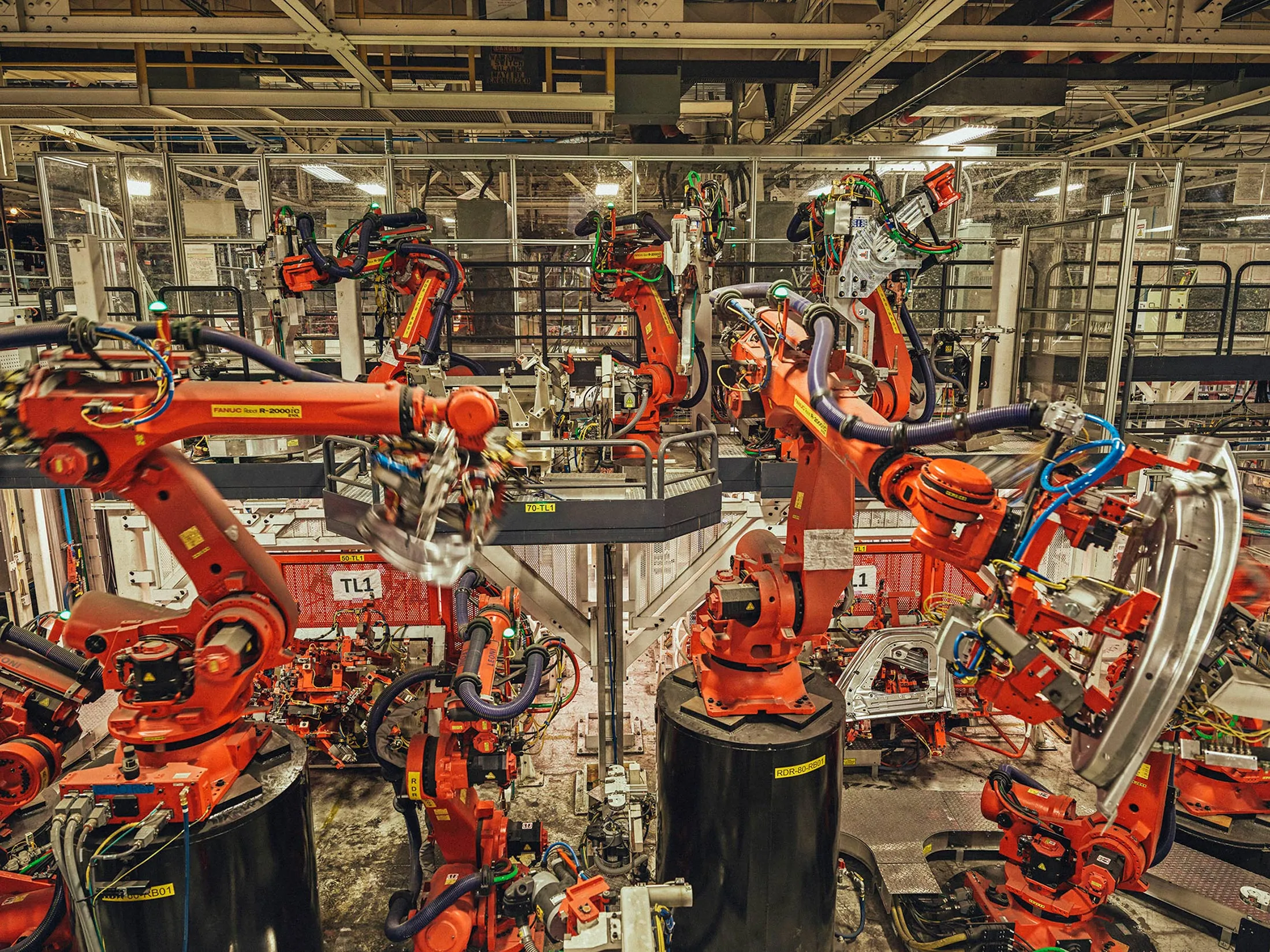 突然间,数十个机器人开始疯狂运作,拾起车门面板,焊接窗柱,进行测量,等等。这场机器人的舞蹈生动地展现了特斯拉首席执行官埃隆·马斯克所称的“外星 dreadnought”,这是一个工厂的代号,唤起了20世纪初的战舰,但却与外星人有关。