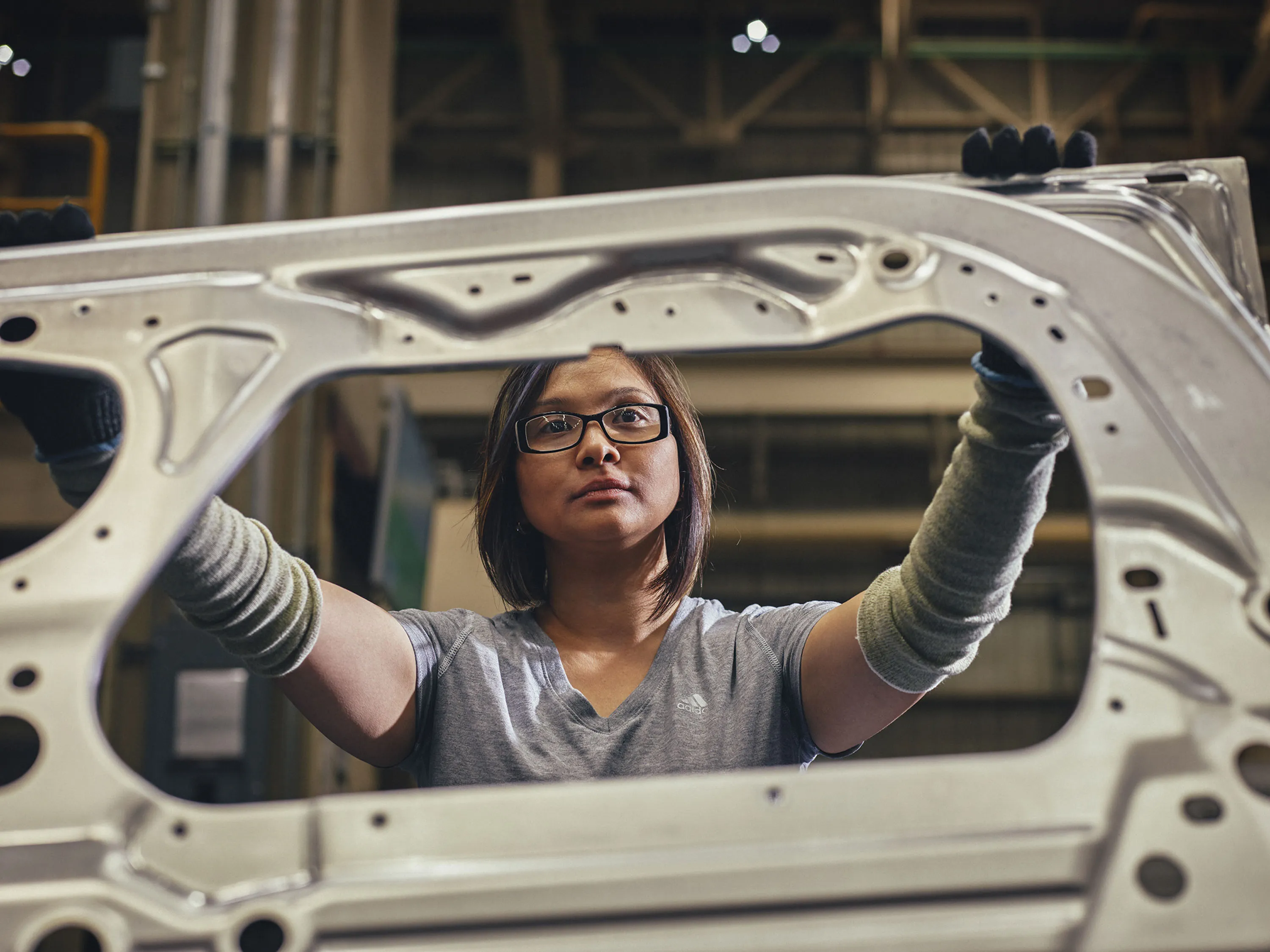 首席生产助理安娜·安东尼奥在Model 3冲压站工作。巴拉兹·加尔迪,彭博商业周刊组装 组装汽车车身的各个部分是所有汽车制造商在不同程度上实现自动化的领域。然而,即使是最先进的工厂也往往依赖人来运输零件并将其装载到机器上。汽车零件被打包以便存储和运输,而在没有人手的情况下,重新拾取它们是困难的。