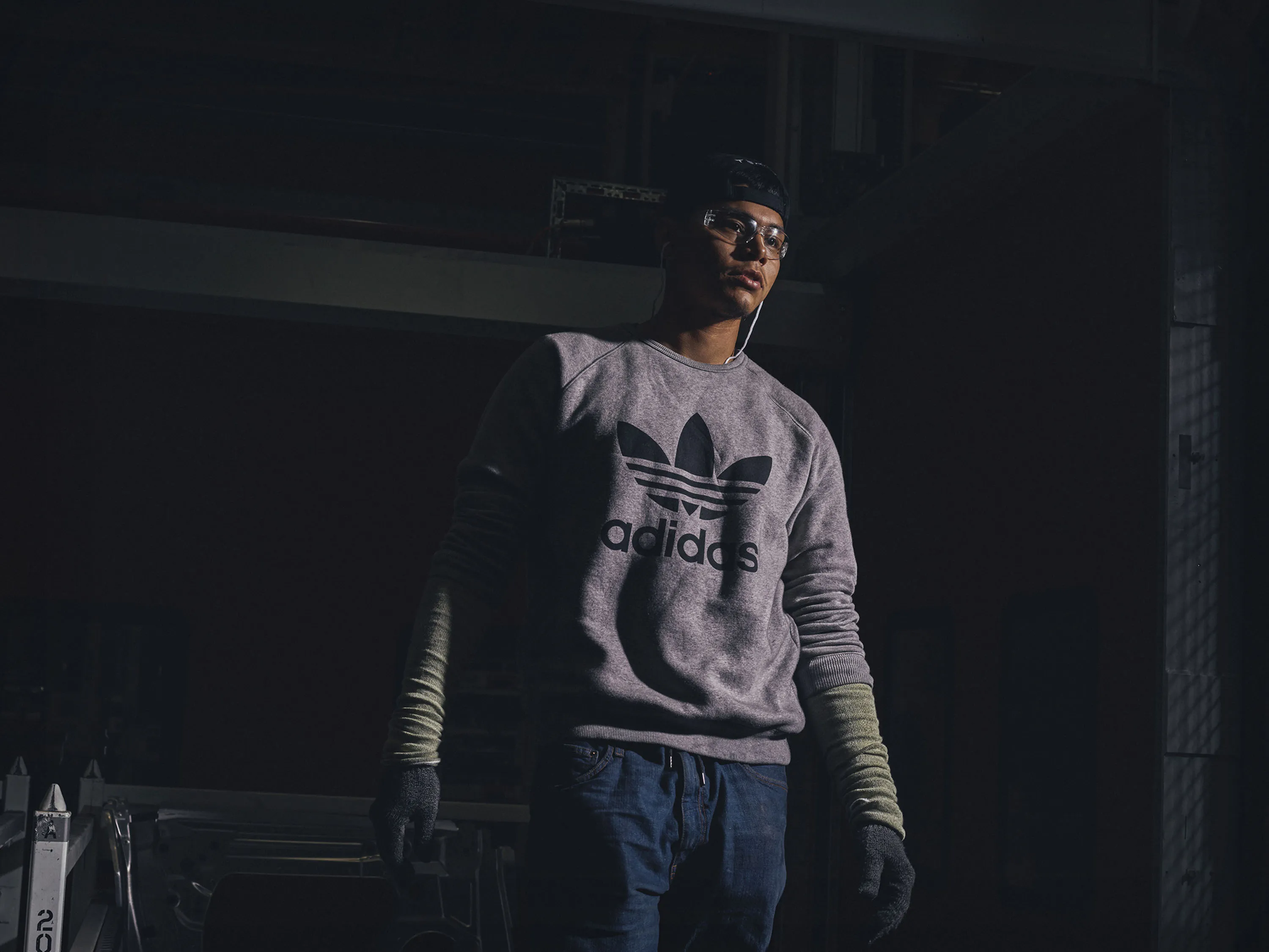 阿德里安·伯恩穆德斯是Model 3冲压的生产助理。摄影师:巴拉兹·加尔迪,彭博商业周刊