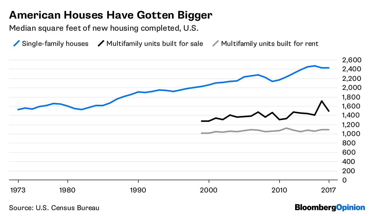 美国的房屋正在变得更大,尽管家庭和土地正在变小,贾斯廷·福克斯写道: