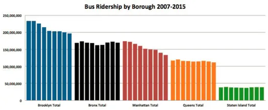 纽约市各区公交乘客数量。埃里克·戈德温在我们的研究中,我们与373名布鲁克林的公交司机进行了交谈。他们描述了自己的经历,帮助我们理解如何将他们的观察和专业知识与技术调整和改进相结合,以制定更好的解决方案。
