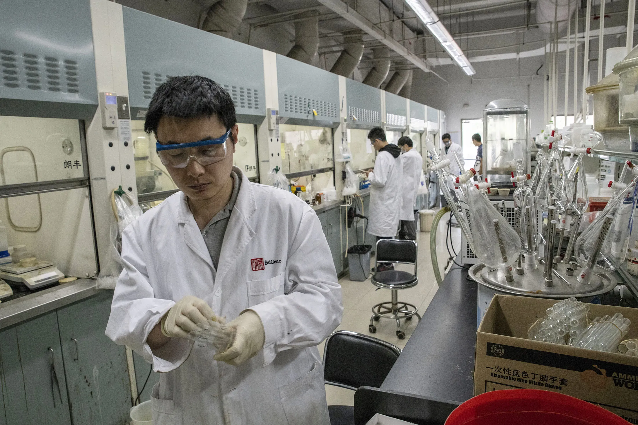 生物实验室的研究人员。摄影师:Gilles Sabrie/Bloomberg“他们正在将各个部分拼凑在一起,并且以西方标准来看,速度和规模都是难以置信的,”纽约的生物技术投资者Marshall Gordon说道,他是Clearbridge Investments的投资者,最近刚从中国生物技术行业的考察之旅归来。