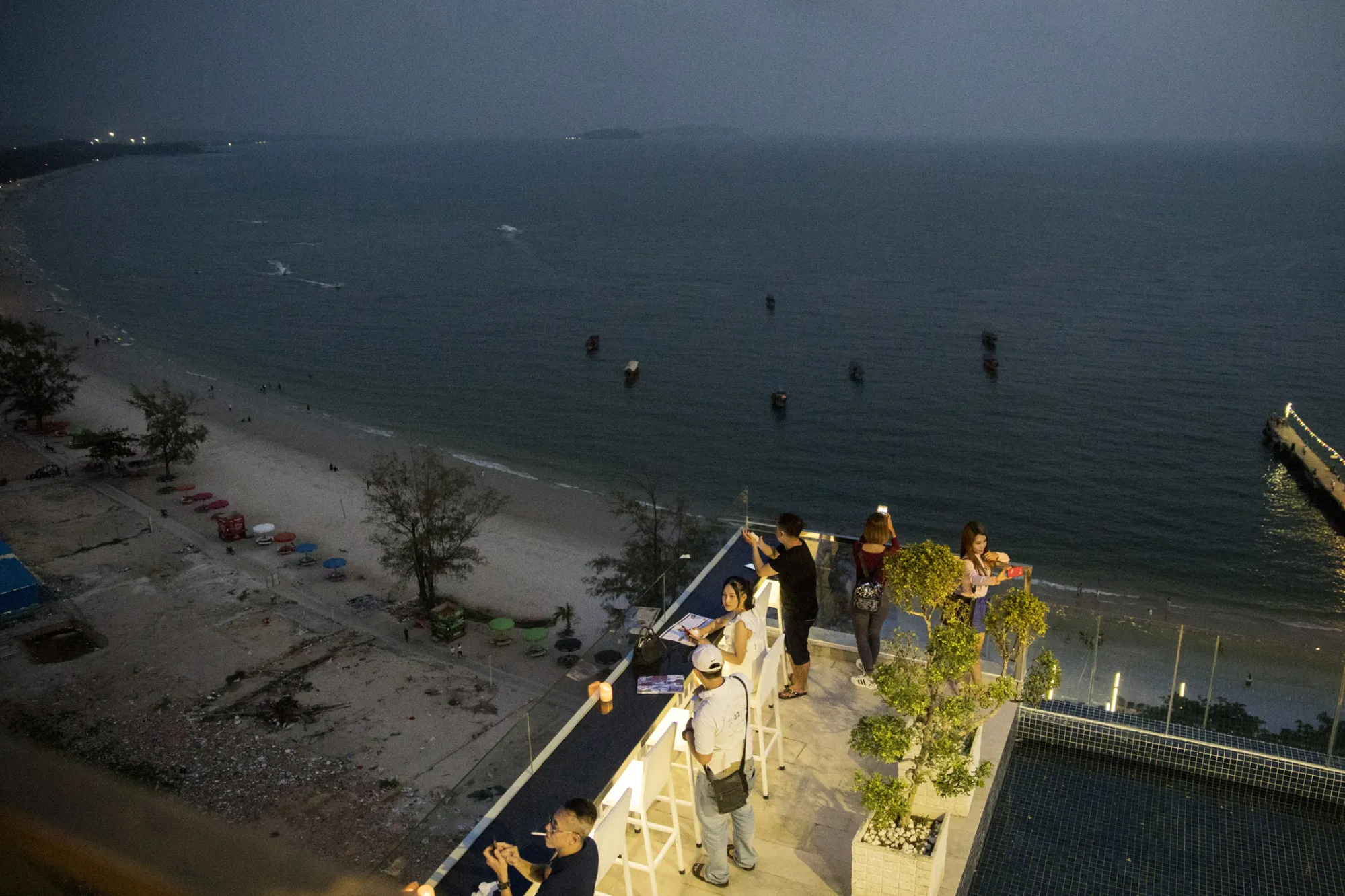 西哈努克的一个屋顶酒吧。摄影师:布伦特·刘因/彭博社当地报纸充满了洗钱、网络诈骗、非法赌博、人口贩卖和酒后驾驶的报道。停电频繁,通常在黄昏时分,当赌场的灯光突然亮起时,电网负荷骤增。