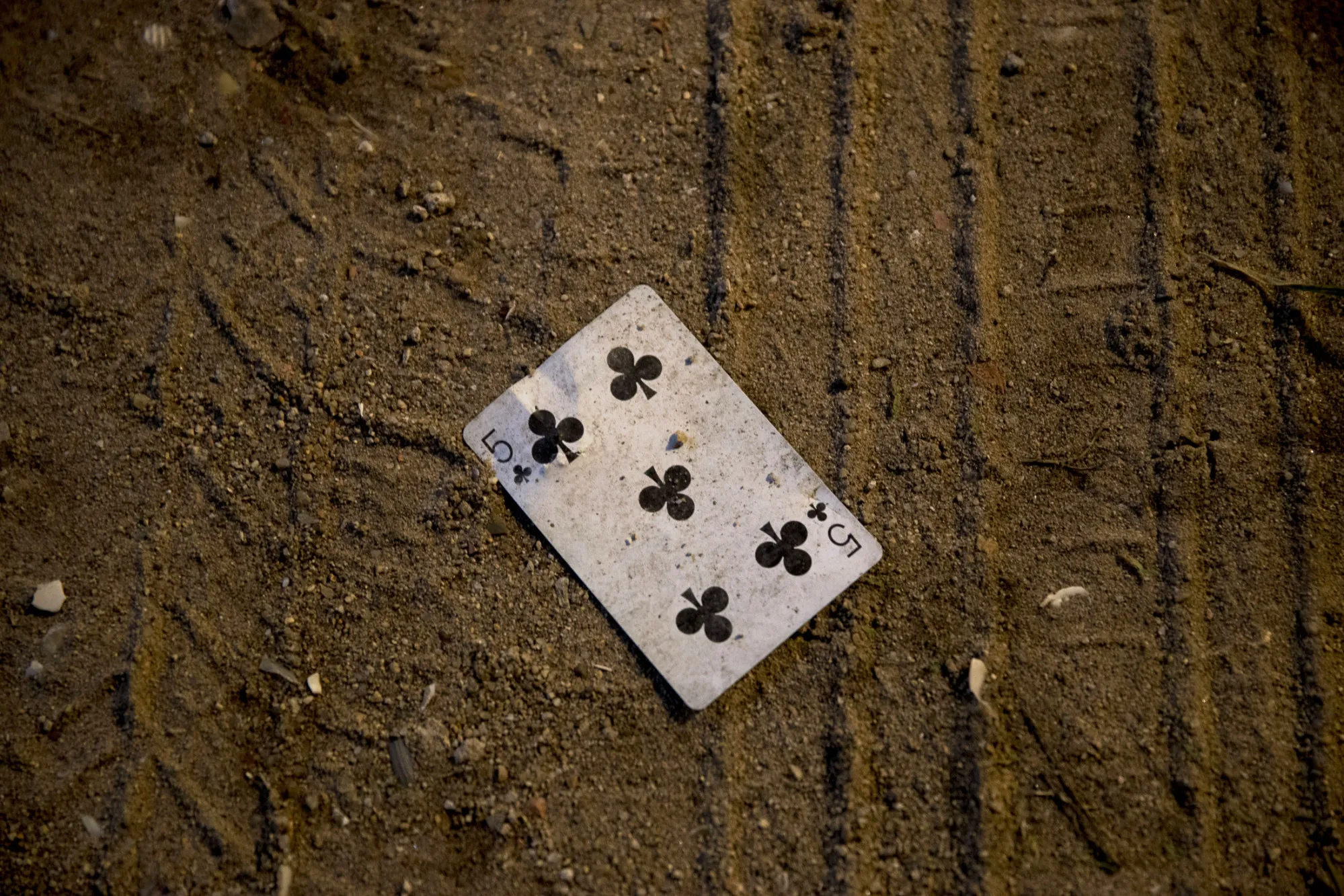 一张被丢弃的扑克牌躺在柬埔寨西哈努克市的街道上。