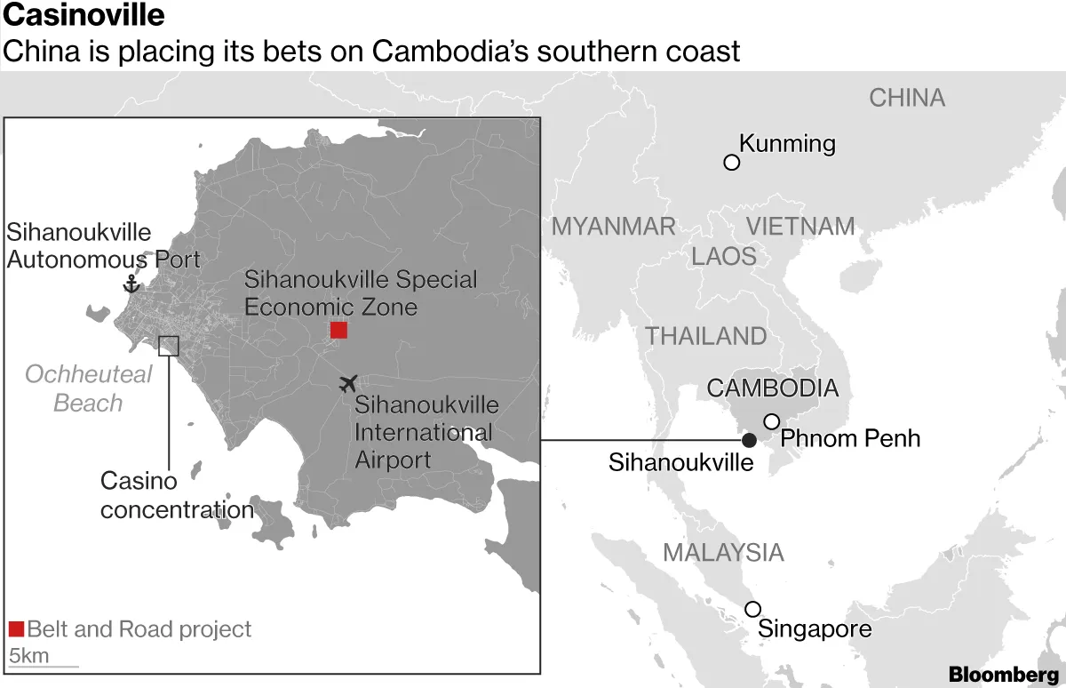 柬埔寨人赌博是违法的。然而,在西哈努克市,这个曾经宁静的度假小镇,过去两年里涌现出三十多家赌场,柬埔寨人正在押注中国建设的基础设施将带来就业和繁荣。到目前为止,他们也赢得了更多的犯罪、更高的住房成本和一些民族紧张关系。