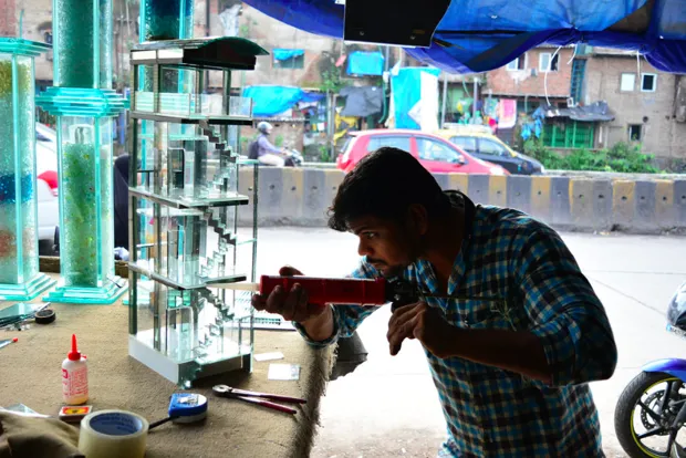 达哈维的一位工匠正在为理想家园达哈维承包商项目完成一个模型。Urbz认识到达哈维居民创造自己环境的活力和多样性,并不意味着对肮脏的感伤。实际上,该地区可以从基础设施投资中受益匪浅,这将使其更加干净、可达,并且整体上更易于居住。