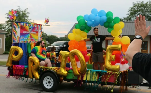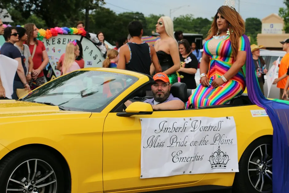 Imberli Vontrell 在平原骄傲活动中乘坐敞篷车。Christiane Robinson尽管当地条件如此——或者正是因为这些条件——酷儿人士及其盟友们常常在家中开始庆祝骄傲,即使更大城市的庆祝活动距离不远。Katherine McFarland Bruce,书籍《骄傲游行:一场游行如何改变世界》的作者说:“他们能够在这些熟悉的地方以这种集体的形式出现,这很有意义。”。