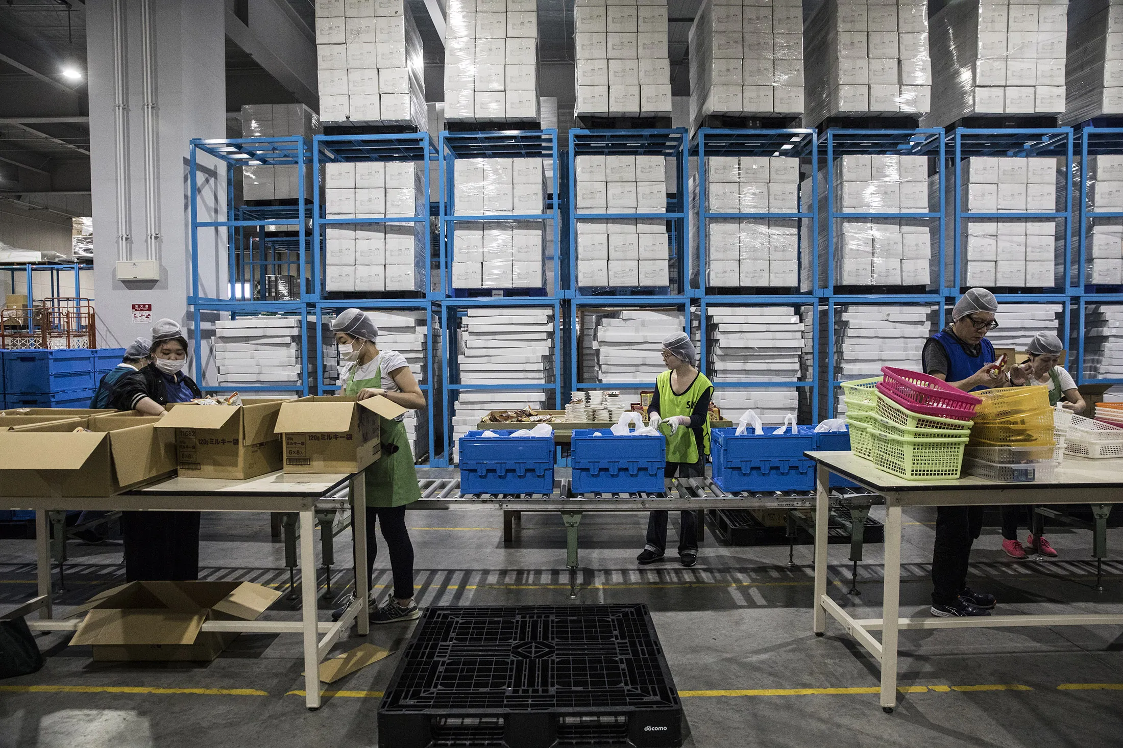 为有需要的家庭在东京打包的免费食品。摄影师:福田志保/Bloomberg“人们害怕被认定为贫困家庭,这种恐惧正在增加他们的压力,”文京区区长成泽宏信说。“我们希望以一种封闭、隐形的方式支持他们,以免他们受到污名化。”