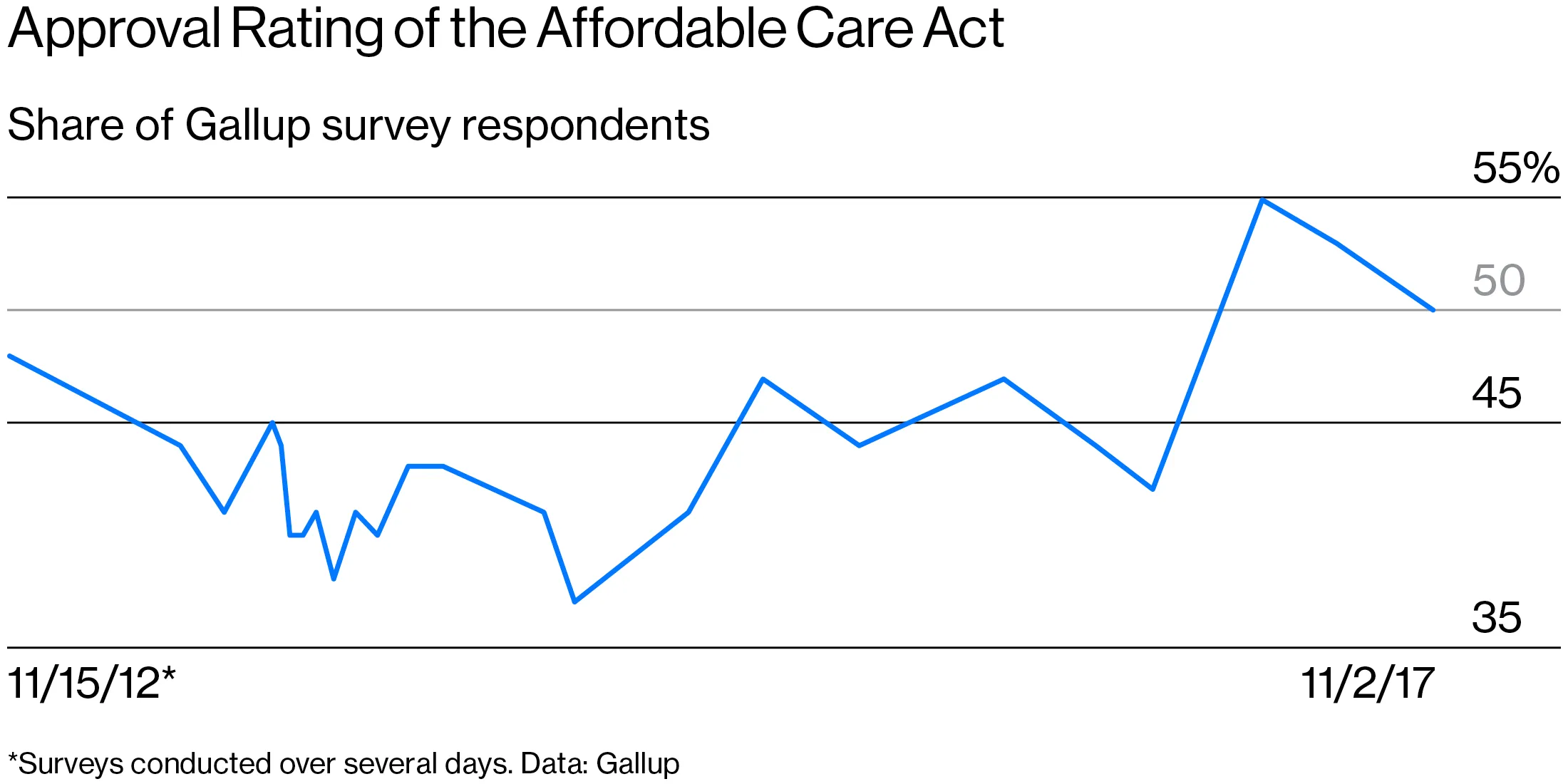 共和党的努力削弱奥巴马医保进一步激发了民主党的决心。2017年的税法废除了要求大多数美国人购买保险的个人强制条款,而特朗普政府也切断了旨在促使保险公司提供ACA计划并降低价格的“成本分担”再保险支付。无党派的国会预算办公室预计这两项措施将导致一个更老、更病态的保险池,并推高保费。共和党人将这些问题归咎于民主党。“毫无疑问:这完全是奥巴马医保造成的,”德克萨斯州参议院多数党鞭约翰·科宁在五月份发推文说。