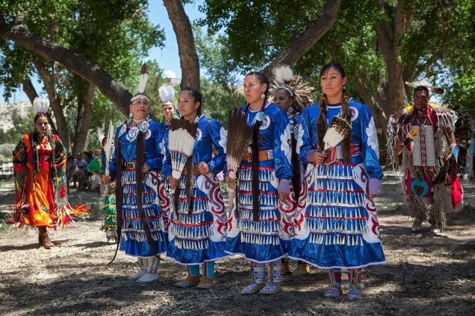 美国土著女性战士协会的成员们于2014年6月在科罗拉多州的普韦布洛参加了一场聚会。从左到右:一等军士米切琳·比格曼(阿普萨洛基族[克劳]/希达察族)、军士丽莎·马歇尔(夏延河苏族)、专员克里西·奎诺内斯(阿普萨洛基族[克劳])和上尉卡莉·克劳德(阿普萨洛基族[克劳]),他们身后是蒂亚·赛勒斯(阿普萨洛基族[克劳])。妮可·唐特劳特曼表示,博物馆希望在2019年9月开始建设纪念碑,并在2020年底揭幕完工项目。与此同时,她正在准备一本书和展览,以配合纪念碑的开幕。将在该展览中展示的文物包括一面用于2004年在费卢杰附近举行的聚会的仪式鼓,以及现役军人使用的仪式铃铛裙。