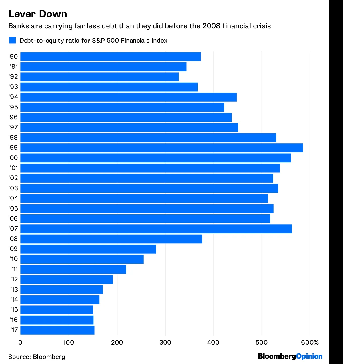这真是非常不令人担忧!当然,银行并不太喜欢监管或风险厌恶的无利可图,他们总是在游说裁判放松限制。最终,大家会忘记危机的教训,银行会再次加杠杆,种下下一个危机的种子。但现在,不令人担忧。