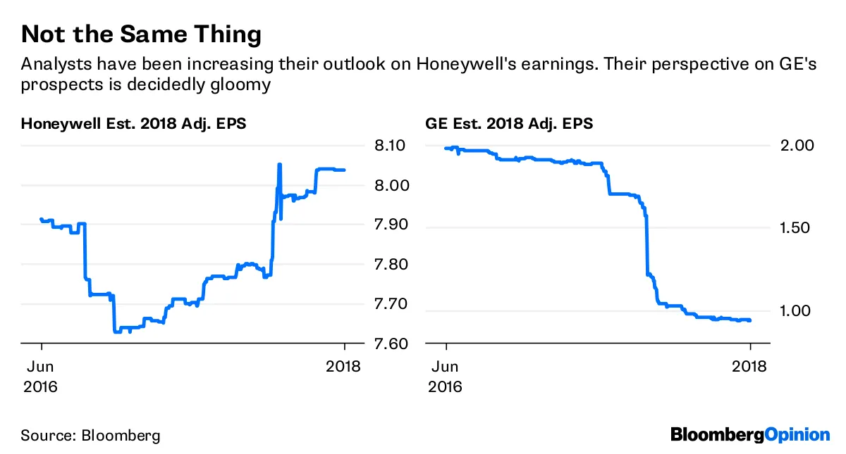 信用评级机构给通用电气公司和霍尼韦尔国际公司相同的评级……这很奇怪,写道布鲁克·萨瑟兰,但这也是霍尼韦尔的一个机会。