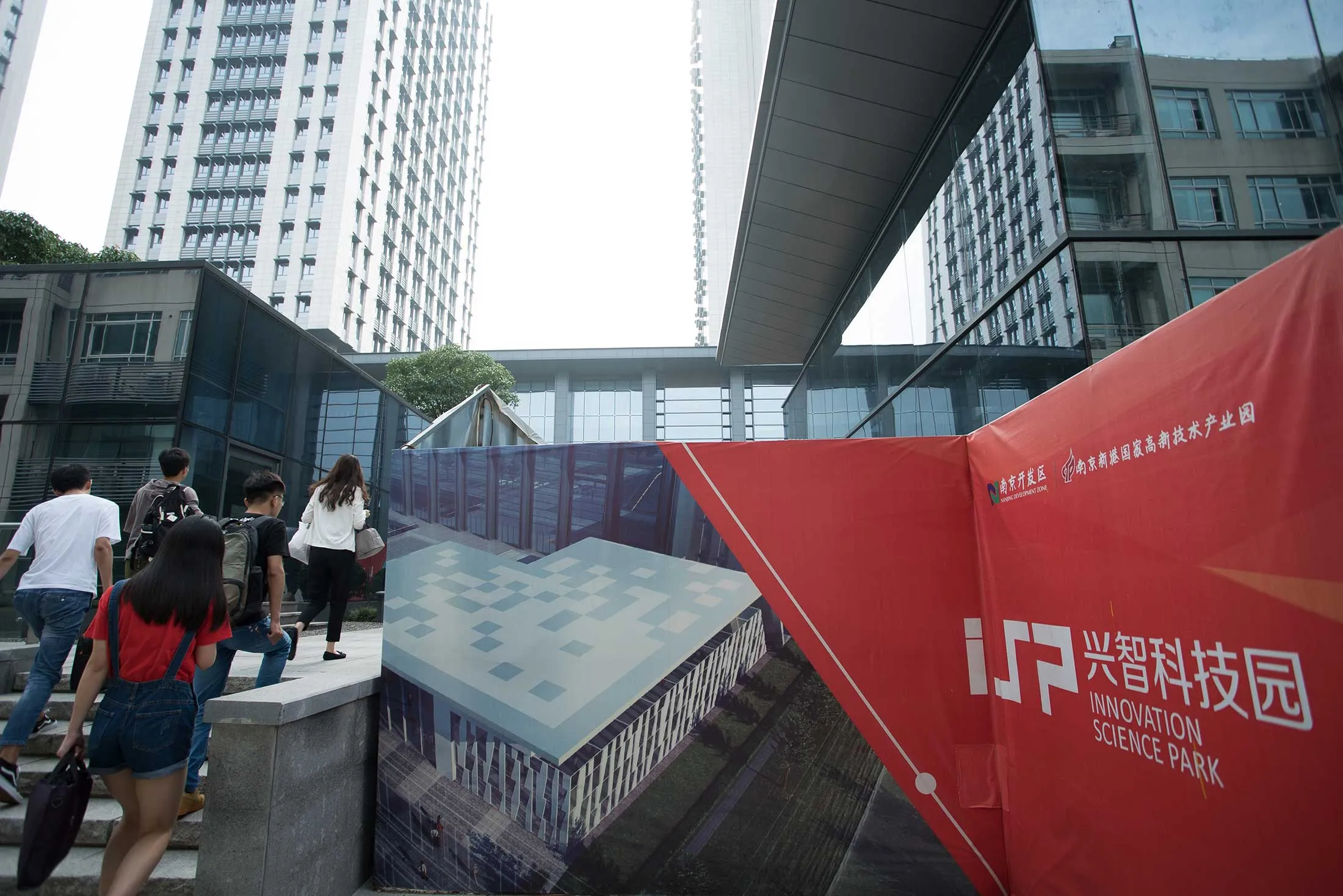 南京在政府努力与硅谷竞争的前线,城市在全球贸易超级大国之间的冲突中扮演着大胆的角色。在一个阳光明媚的六月早晨,一群人聚集在南京园区的B栋,庆祝一家初创公司的到来。“请把手放在屏幕上,正式点燃我们业务的开幕,”主持人对台上的政府官员和受邀的高管说。“三、二、一,点燃!”模拟闪电从每个人的手掌上射出5米,汇聚成一场幻影。音乐响起。