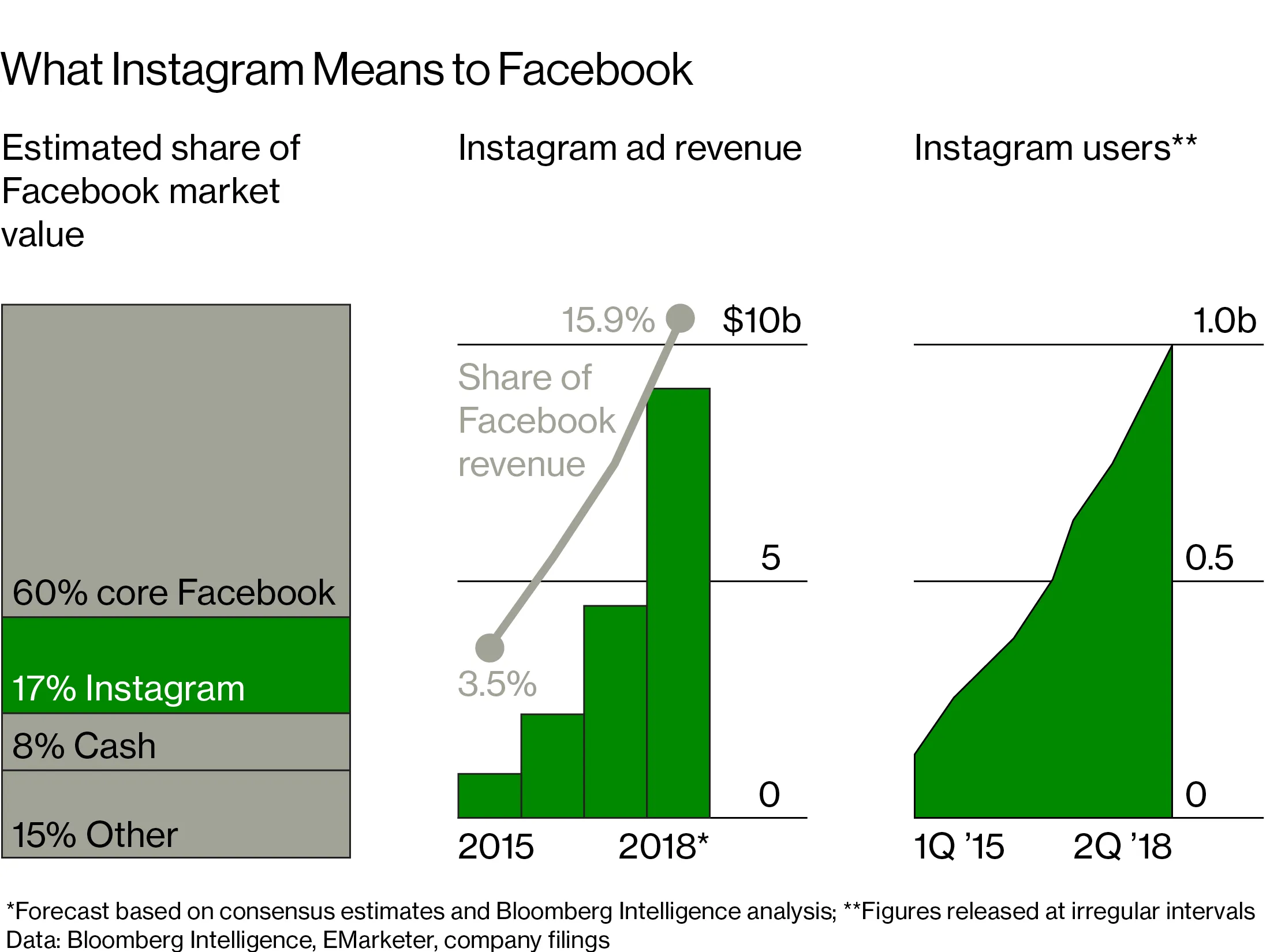 彭博商业周刊深入了解设定体育博彩赔率的公司为什么服装转售平台如此难以盈利?Lina Khan 刚刚开始(她希望如此)中国在太空中追赶埃隆·马斯克不可否认,Facebook 和 Instagram 之间的权力动态正在发生变化。Instagram 拥有 10 亿用户,超过 Facebook 在收购时的用户数量。根据彭博情报的最新分析,该资产的价值超过 1000 亿美元。而且 Instagram 在年轻用户中持续增长,这些用户对 Facebook 的增长至关重要。此外,Facebook 用户因厌倦了困扰母公司的政治争吵和隐私丑闻,纷纷涌向 Instagram 的照片和视频应用作为逃避。根据分析公司 SimilarWeb 的 Android 数据,用户在六月平均每天在 Instagram 上花费 53 分钟,仅比在 Facebook 上少五分钟。随着用户基础的增长放缓,Facebook 的未来在 Instagram 上更为确定,而不是没有它。
