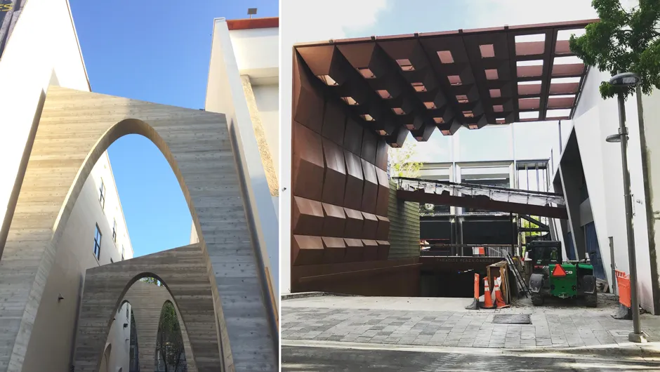 图尔最初受到克莱思想的影响,随后又受到自己旅行的启发,部分以意大利山坡城镇如锡耶纳的教堂和小巷为模型,设计了翡翠小巷。他创造的宏伟抛物线拱门是故意粗糙、颗粒感强的混凝土。“经过过去10年的研究和旅行,我意识到,如果你过度设计或使用错误的材料,你几乎就毁掉了它作为小巷的事实,”图尔说。“使用回收砖、粗糙混凝土、纹理花岗岩鹅卵石和涂抹的灰泥,尽管它部分是全新的,但仍然感觉粗糙。”