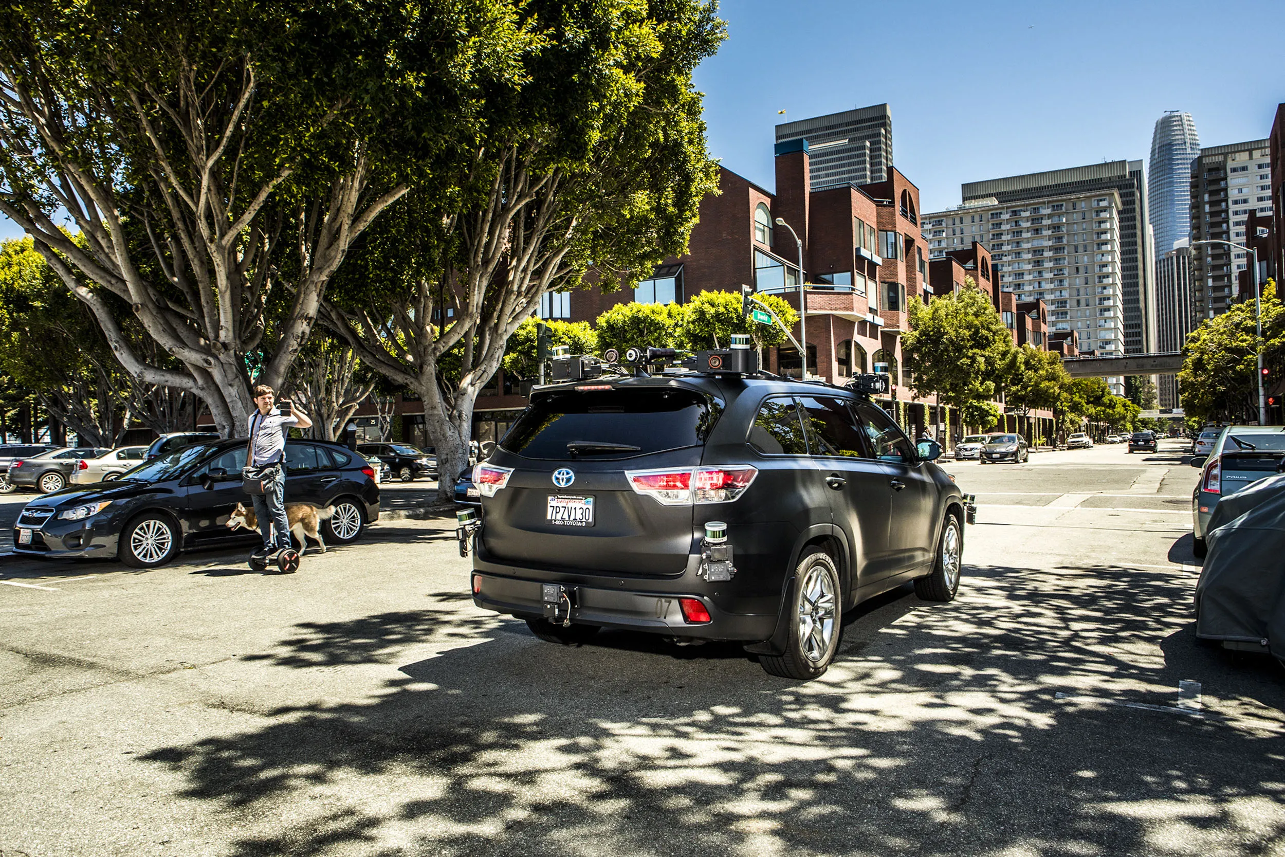 一位路人拍摄了一辆Zoox自动驾驶汽车,当它从旧金山办公室的后场驶出并上路进行测试驾驶。摄影师:Christie Hemm Klok为彭博商业周刊然而,任何自动驾驶汽车的真正试验场是实际的街道和高速公路,在那里,发短信的人、路怒症患者和一般不稳定的驾驶者游荡。在五月的一个工作日,Kentley-Klay在消防局后面的停车场迎接我。一辆丰田汉兰达停在大约100英尺远的地方。Zoox原型车尚未获得街道合法性,这意味着公司必须依赖一队汉兰达来训练和测试其传感器和软件。这些车辆的侧面悬挂着摄像头和激光器,后储物区有巨大的嗡嗡作响的计算机。