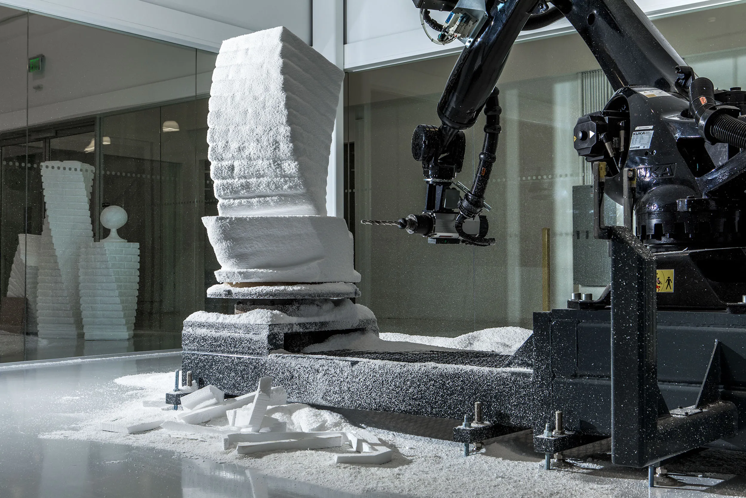 一个机器人手臂为福斯特市的入口雕刻。摄影师:Christie Hemm Klok 为彭博商业周刊Zoox 车辆轻松穿行于郊区,礼貌地在四路口等待轮到自己,并给骑自行车的人留出足够的空间。当一辆黑色送货卡车意外地横穿两条车道时,Highlander 停下并避免了碰撞。几分钟后,我们上了高速公路,丰田以一种可以称之为超安全模式的方式并入车流。它没有猛踩油门试图超越迎面而来的交通,而是紧贴匝道边缘,等待机会。