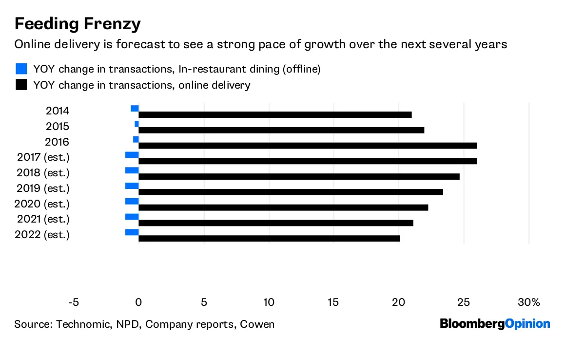 餐饮业需要 立刻跳上在线配送的潮流*,马上*,写道莎拉·哈尔扎克。