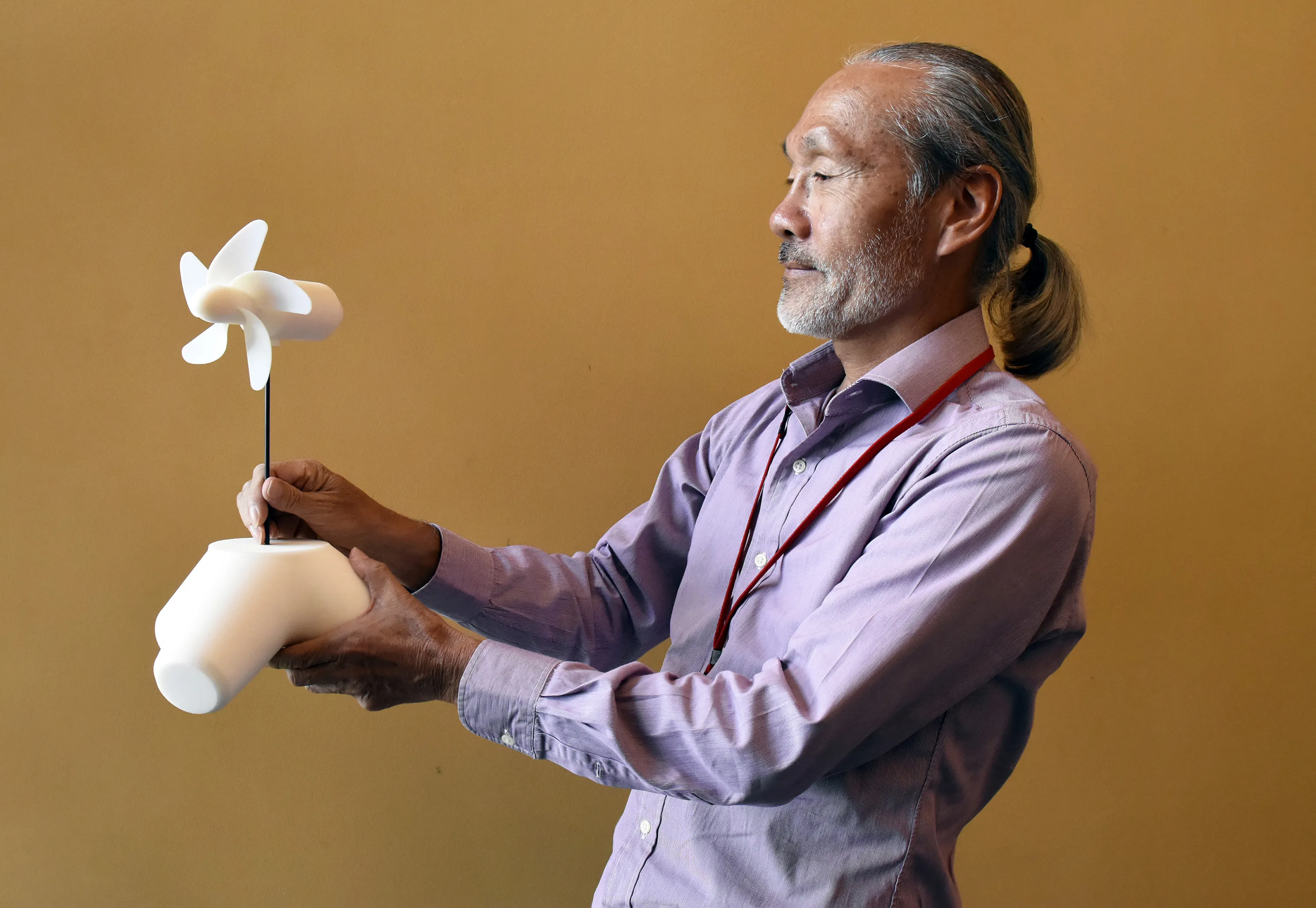 花费约10,000美元,这位扎着马尾的教授成功建造了一台小型螺旋桨驱动的涡轮机,但他没有资金进行测试或市场推广。然后在2015年末的一个晚上,在 电视上演示机器后,电话响了。一位名叫山下浩平的房地产大亨想要支持他的发明。