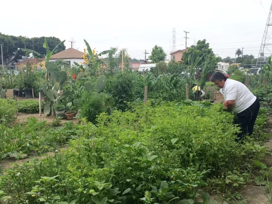 位于洛杉矶县弗洛伦斯-法尔斯通非建制社区的弗洛伦斯/法尔斯通社区花园。来自“从空地到地点”的赞助Cyndi Hubach是UAIZ税收减免的首批受益者之一。她将一个停车场改造成了伊利西安谷社区花园,那里有一个蜂箱,并作为堆肥中心。Hubach还是LAFPC城市农业工作组的共同主席。