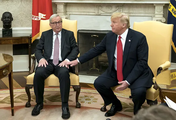 欧洲委员会主席让-克劳德·容克今天前往白宫,试图达成一些贸易和平。会面 开局相当温馨: