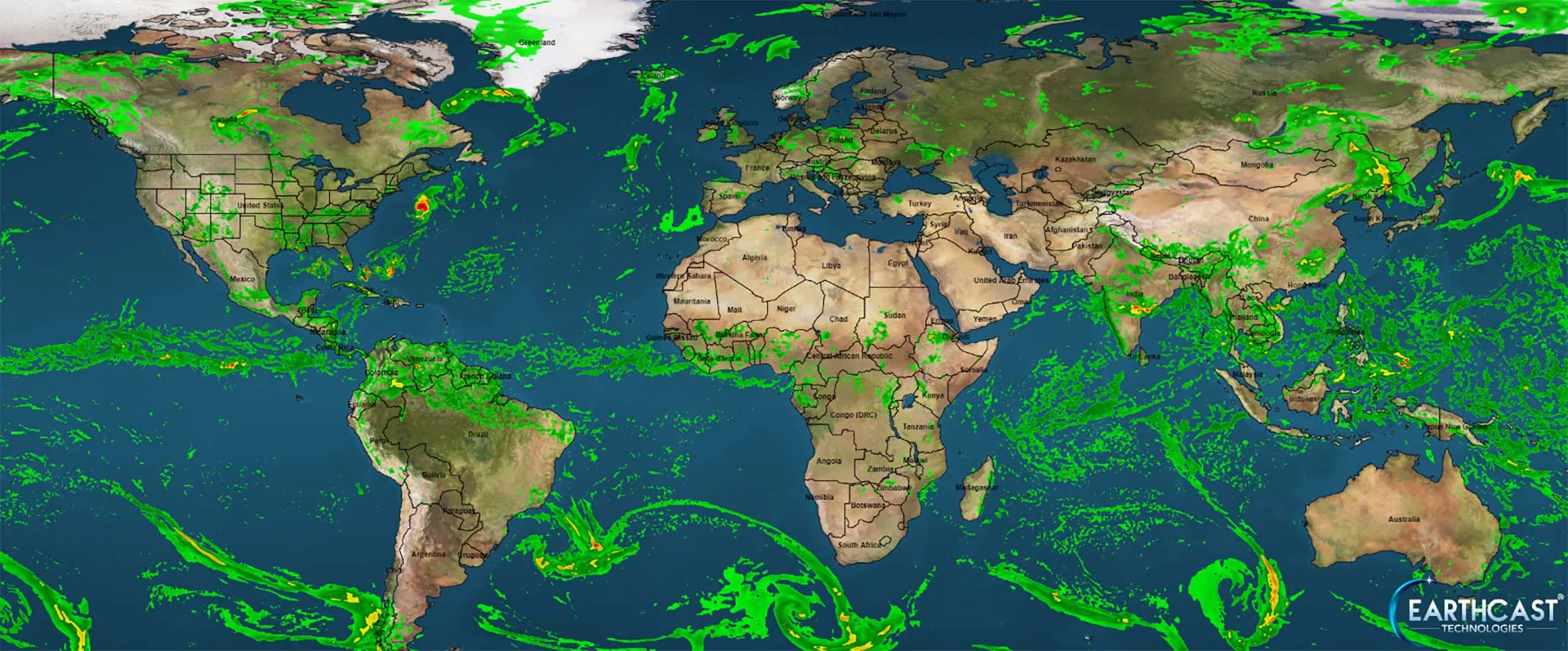 全球雷达预测。来源:EarthCast技术公司飞行员长期以来一直可以获取出发和到达机场的基本天气信息,但EarthCast使他们能够绘制特定航线的条件。该公司从60颗主要由政府运营的卫星星座中提取数据,并将其与地面和飞机传感器的信息叠加,这些传感器跟踪从闪电到气流的所有情况。这种完全本地化的实时能力使EarthCast与面向消费者的服务如国家气象局和应用程序Dark Sky区分开来;除了航空公司,EarthCast的客户还包括政府机构和其他商业气象公司。理论上,EarthCast可以为从热气球到无人机的所有事物定制预测。—A.T.