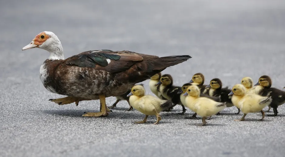 这些小鸭子本可以使用动物桥。威尔弗雷多·李/AP在澳大利亚海岸的圣诞岛,护林员尝试了另一种方法来促进交配,架设了一座5米高的塑料桥,以引导成千上万只曾经在繁忙的干道上奔跑的红蟹进行繁殖和产卵。