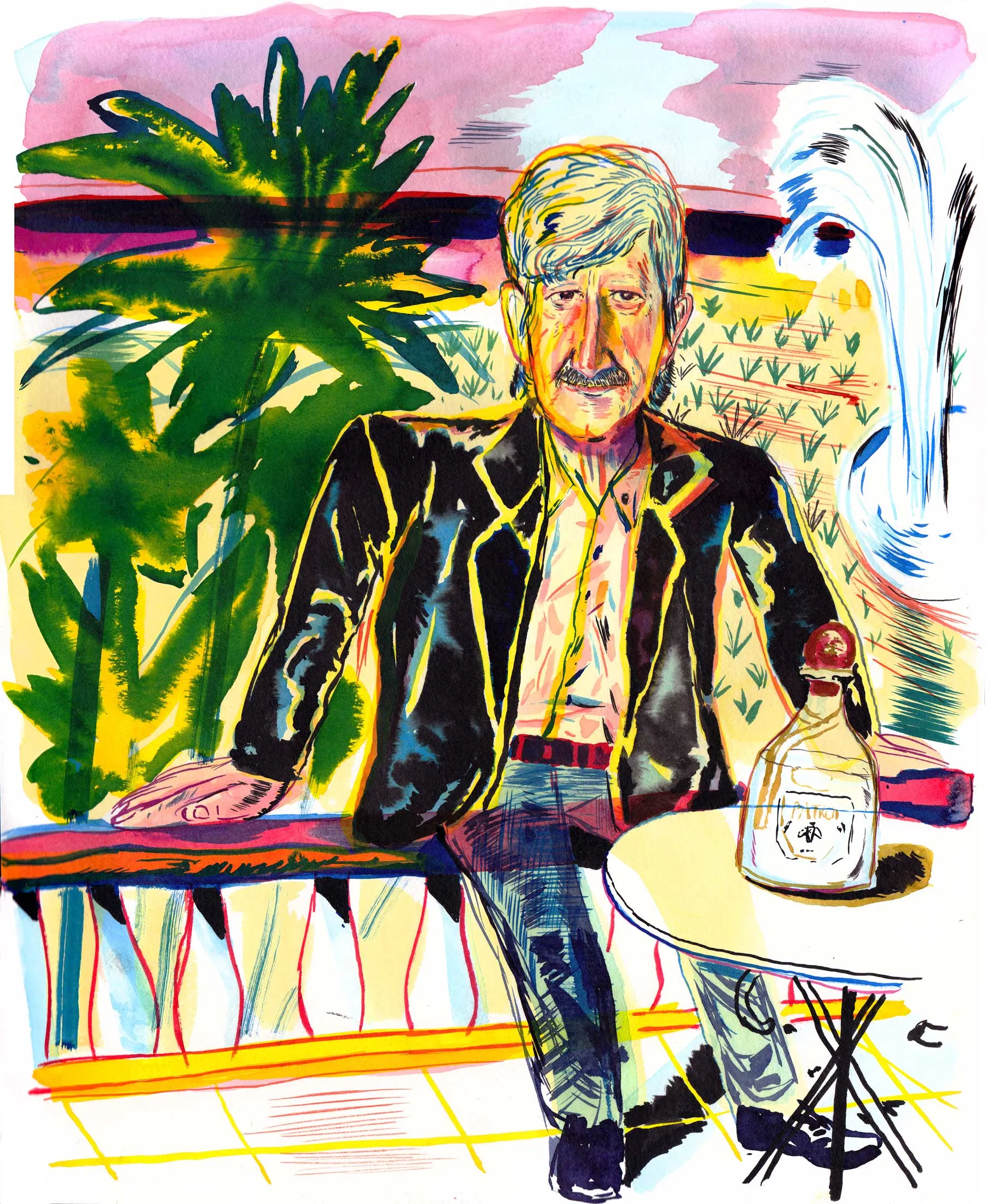 插图:Yann Kebbi 为《彭博商业周刊》创作1989年的一天,弗朗西斯科·阿尔卡拉斯,当时是特基拉Siete Leguas的首席酿酒师,正离开位于阿托托尼尔科·埃尔·阿尔托的公司双工厂,这时一个戴着太阳镜、衬衫半扣的男人向他喊道:“你能帮我吗?”这个男人问道。阿托托尼尔科是一个安静的村庄,外来者很少,位于墨西哥哈利斯科州的高地。直到今天,Siete Leguas坐落在一个小街道的山顶上,交通稀少,以至于其砖砌外立面的门常常敞开着。在那里听到有人说英语是意想不到的,更不用说一个肤色黝黑、身材魁梧、全身黑衣的美国人,像约翰尼·卡什一样。这个男人问阿尔卡拉斯是否认识酿酒厂的老板。当然,阿尔卡拉斯说。已故创始人的女儿卢克雷西亚·冈萨雷斯是他的老板。