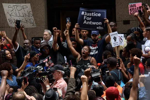 抗议者在匹兹堡集会,反对警察杀害安特万·罗斯二世。盖蒂### 警察暴力与污染之间的联系