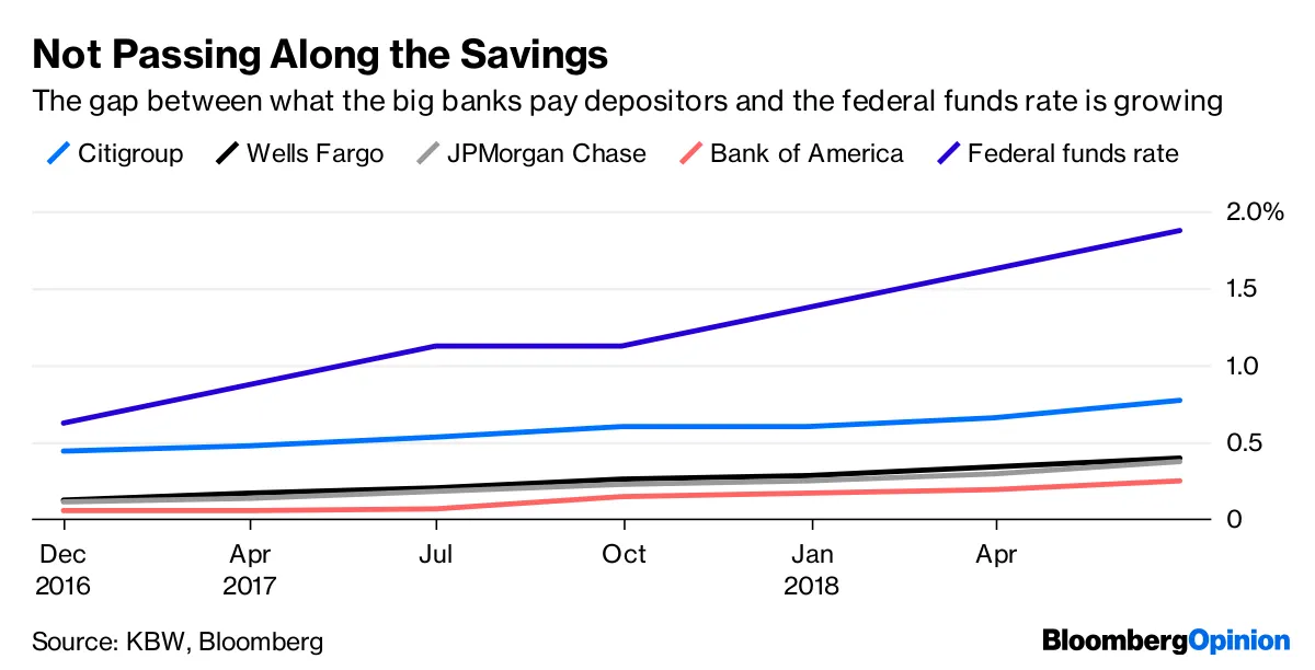 提高利率以帮助可怜的储户!人们总是这样说,当时美联储的利率接近零。好吧,美联储已经提高利率一段时间了。储户终于感觉好些了吗?并没有,斯蒂芬·甘德尔写道。你永远猜不到谁实际上从更高的利率中受益。你可能想坐下来 – 哦,我在开玩笑?当然,你可以猜到: 是银行。