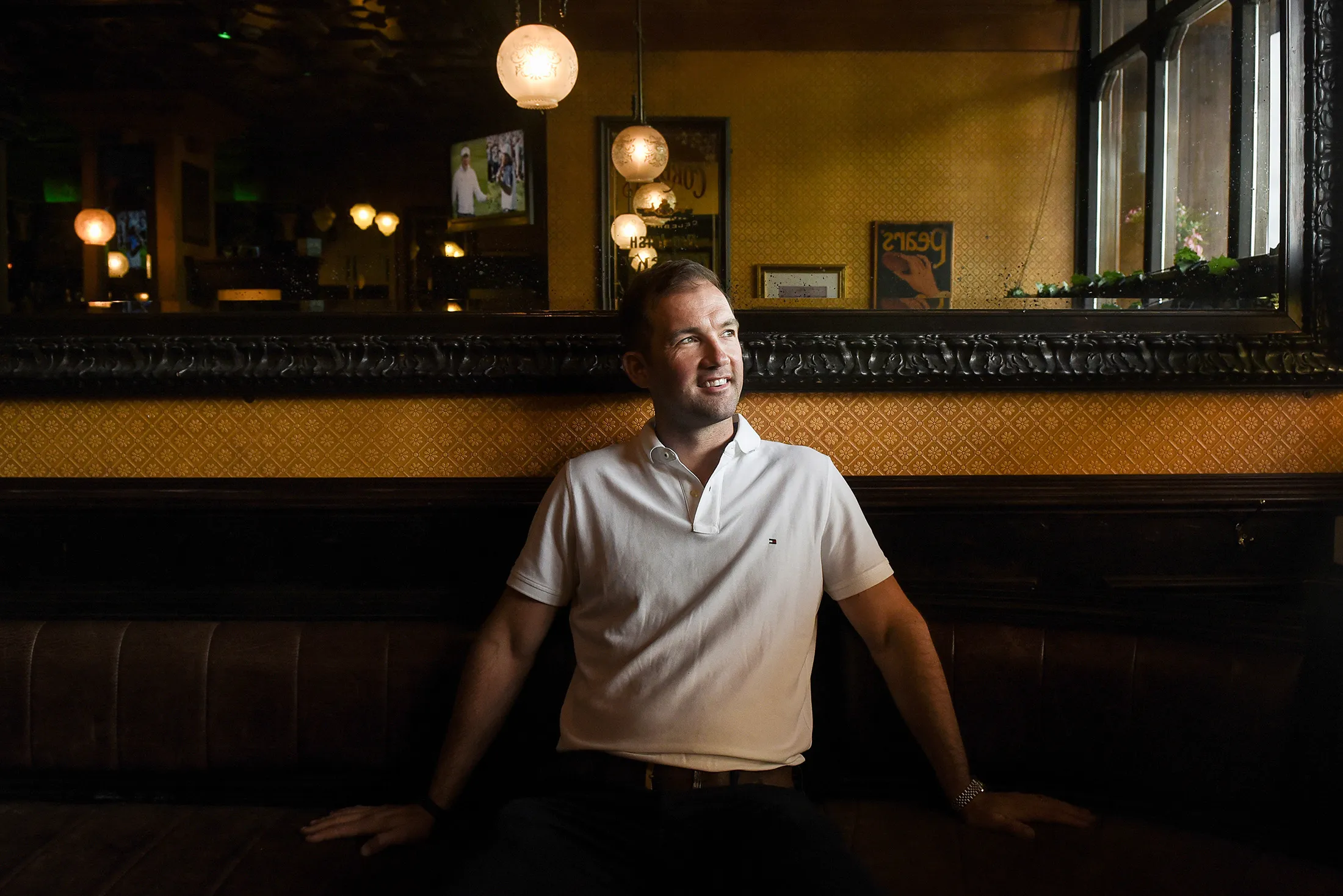费尔戈尔·奎因在斯莱戈的一家酒吧摄影师:玛丽·特纳/彭博社费尔戈尔·奎因在爱尔兰西北部的斯莱戈组织单身汉和单身女郎派对,距离边界约40英里。一年前,他在接受彭博社采访时对脱欧持放松态度,因为公投结果并没有阻止大约60%的顾客来自北爱尔兰,他们在涂鸦裸体画或跳崖后,前往他与兄弟共同经营的夜总会。