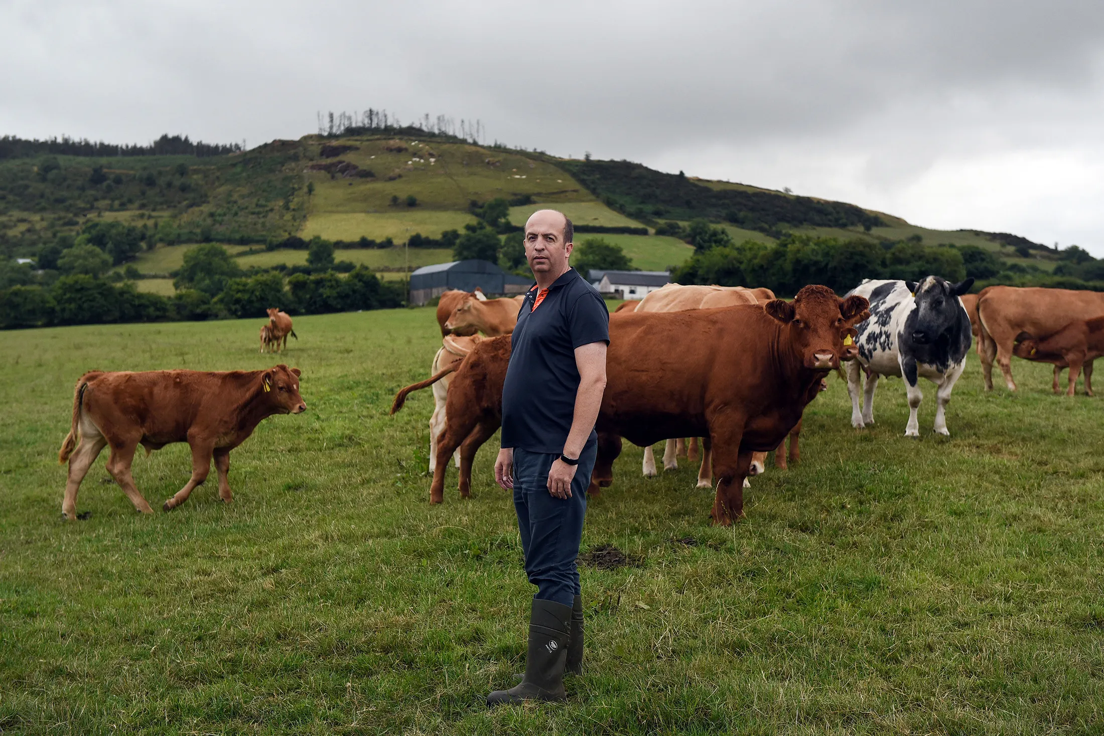 达米安·麦金尼在他的农场摄影师:玛丽·特纳/彭博社达米安·麦金尼在琼斯堡经营邮局,这个小村庄位于阿马赫,距离爱尔兰边界不到一英里。