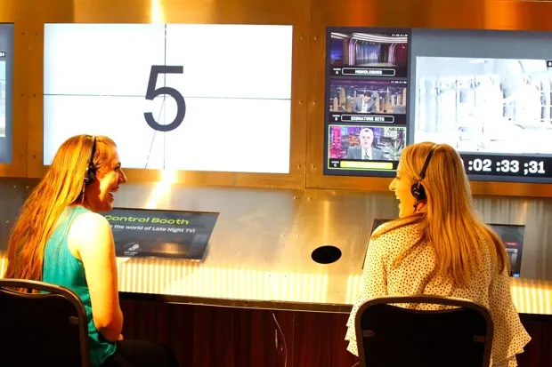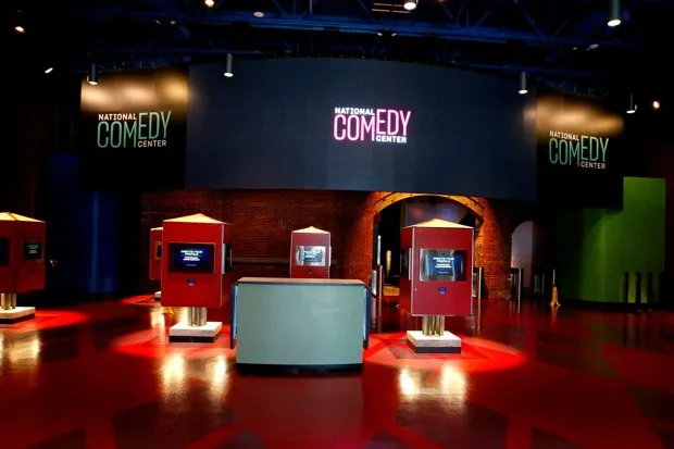 游客们体验一个模拟深夜电视节目控制室的展览。由国家喜剧中心提供博物馆本身的造价为5000万美元,其中一部分来自州和联邦政府的资金,并且它拥有最先进的怀旧与科技结合的展览。进入时,游客会获得一个电子腕带,他们在一个询问最喜欢的喜剧演员、电影、情景喜剧等的自助服务机上刷卡。展览随后会根据每位博物馆参观者的个人喜剧品味进行响应。例如,在独角喜剧休息室,参观团体在鸡尾酒桌旁的椅子上落座后,刷卡通过电子读卡器,互动多媒体展示便开始了——表演、纪录短片、问答——所有内容都是专门为房间内的团体算法策划的。同时,一个全息剧院则提供喜剧演员吉姆·加菲根的独角戏片段。