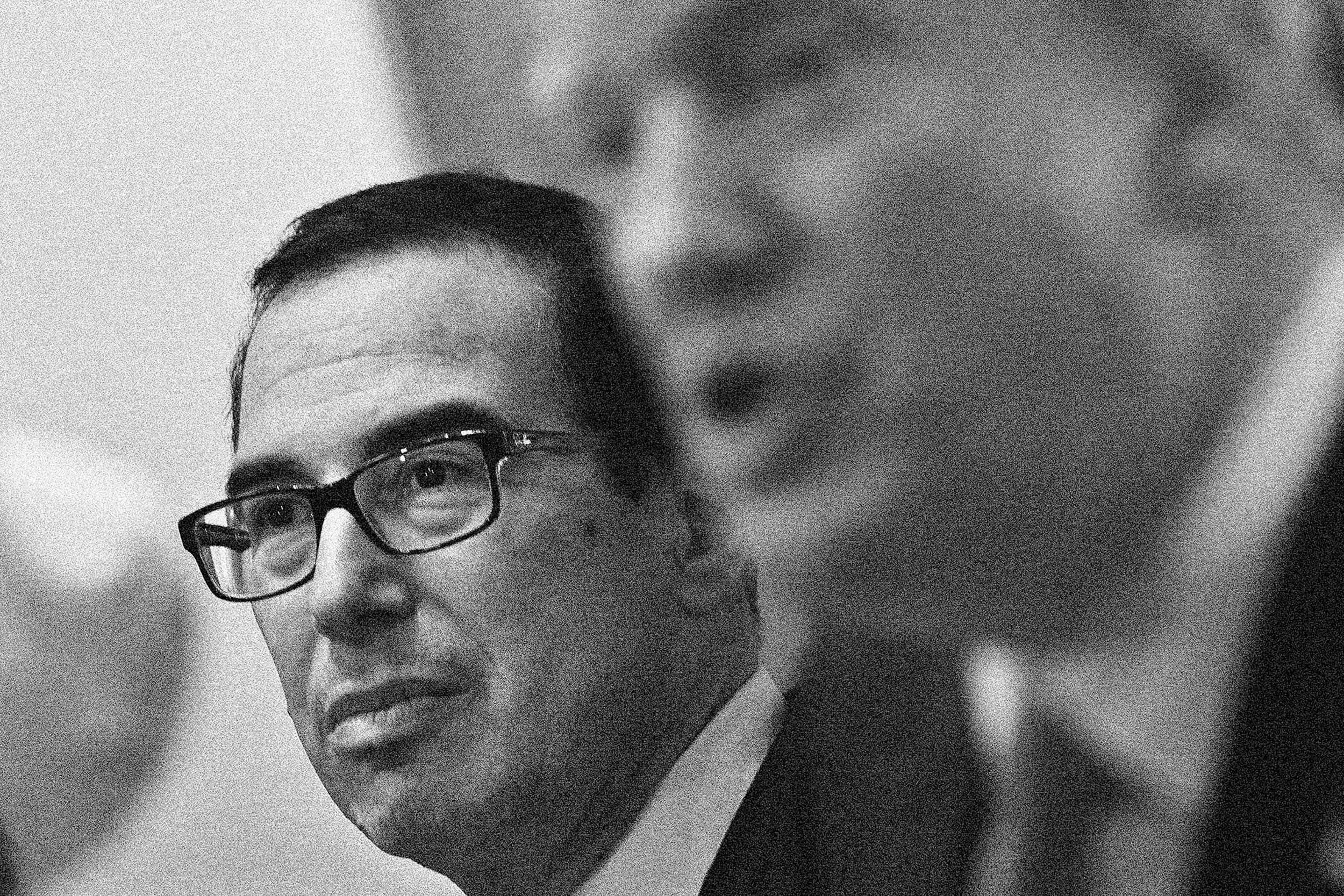 在6月的七国集团财长会议上,姆努钦几乎承认了自己的无力。“他说,‘别告诉我,直接去找特朗普总统,’”日本财务大臣麻生太郎对记者说。“坦率地说,我为他感到遗憾。”在另一次这样的会议上,姆努钦静静地听着另一位七国集团财长对他讲述特朗普关税的可恶,消息人士称。