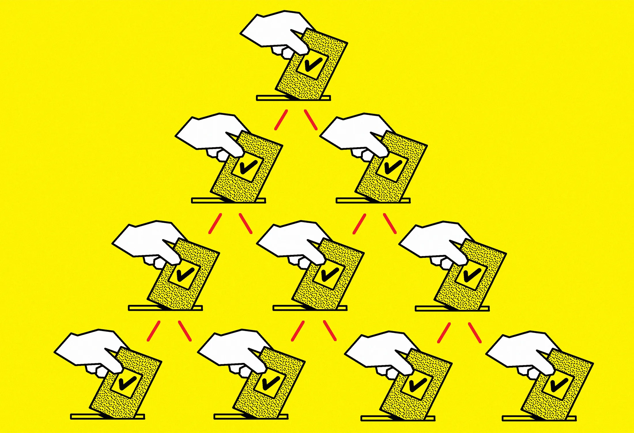 插图:托马斯·科利根为《彭博商业周刊》创作在麦克·华纳的23年美国陆军生涯中,他亲身经历了海外投票的种种障碍。“在阿富汗的一个山坡上,收邮件很困难,寄出去也很困难,”他说。