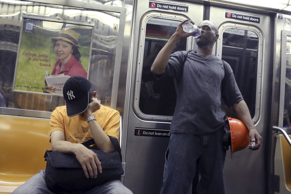 大家保持水分。玛丽·阿尔塔费尔/AP纽约市地铁人群的公告:过热的站台是健康隐患,无论是在高峰通勤时段还是非高峰时段。周四,至少一个最繁忙车站的内部温度达到了104华氏度——比中央公园的最高气温高出近20度。