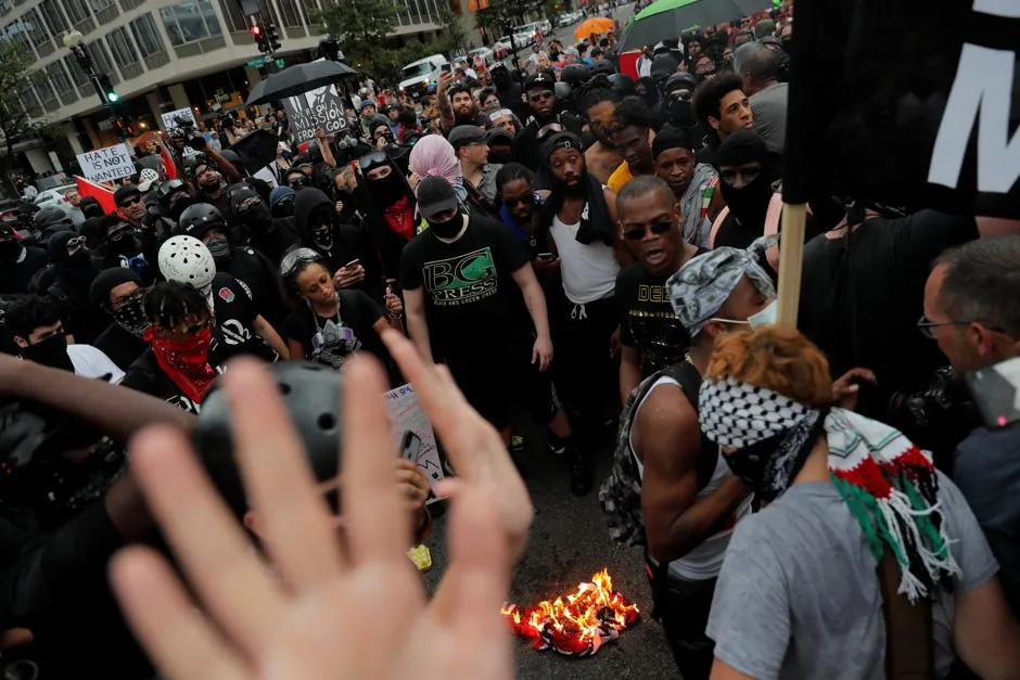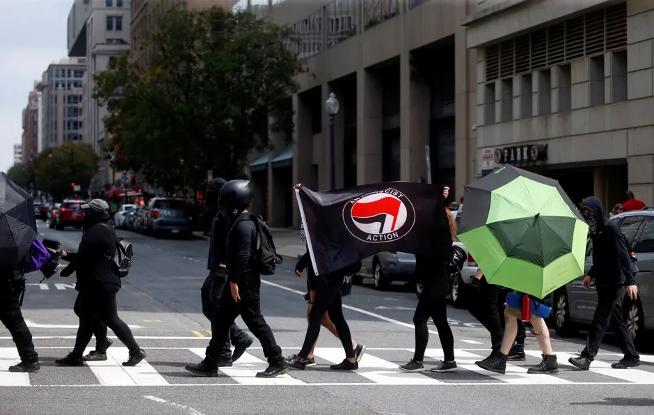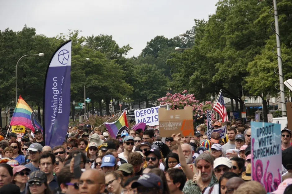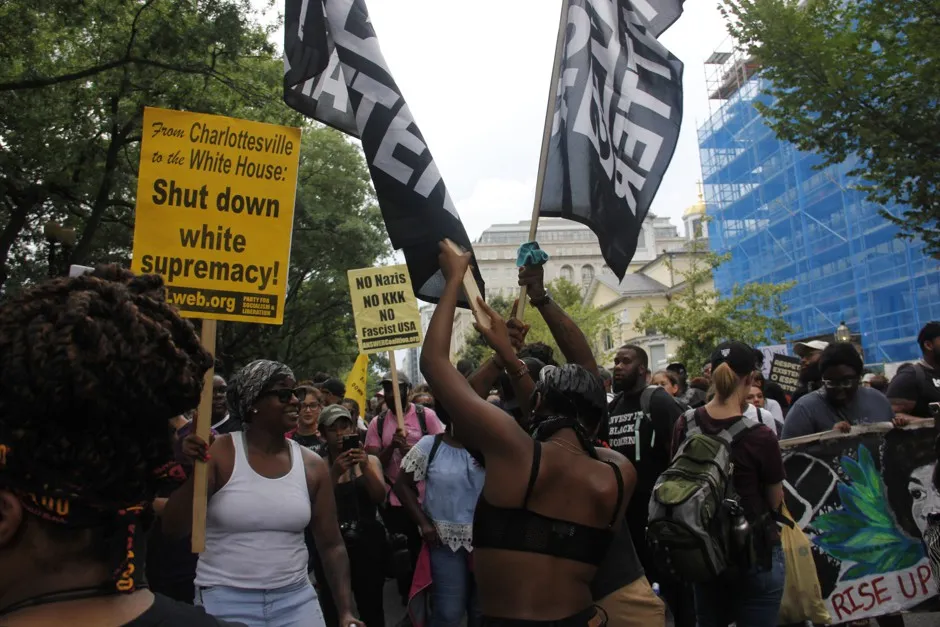 一些反法西斯派别显然已经做好准备进行反对。在某个时刻,他们烧了一面南方联盟旗帜,黑烟飘散在H街上空。但即使在他们中间,有些人认为最好的情况是白人至上主义者“因我们的数量而感到过于害怕”,无法到达拉斐特公园。其他反法西斯和社会主义组织强调非暴力的方法。