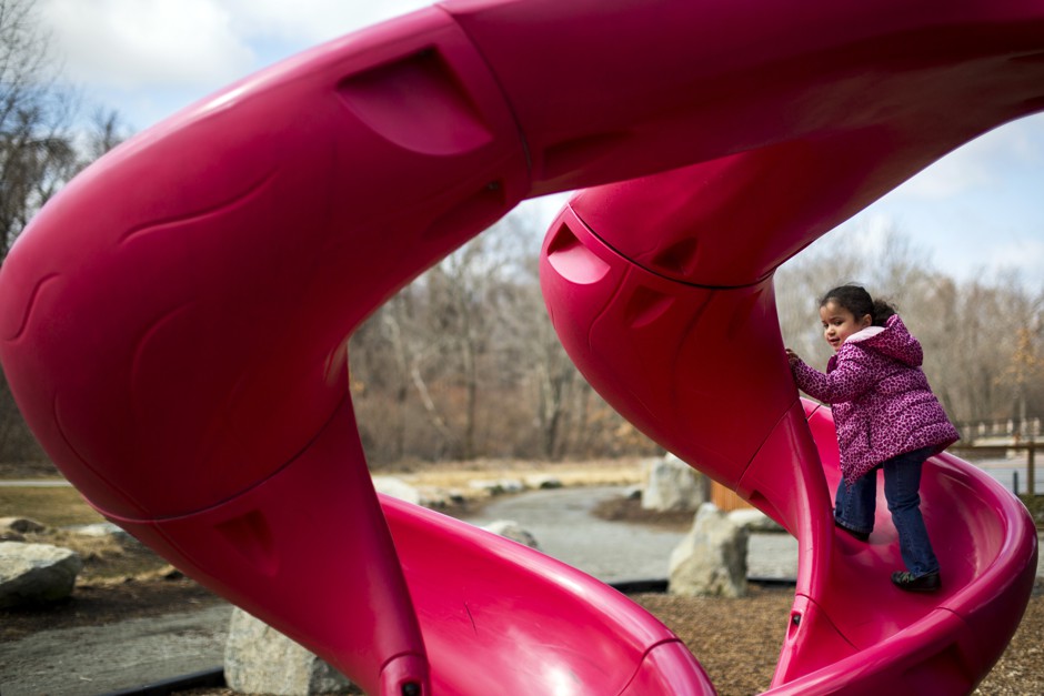 在罗德岛普罗维登斯的游乐场里,一个年轻女孩。卢卡斯·杰克逊/路透社信息时代带来了对儿童福祉的恐惧时代,规范严重倾向于持续监督和几乎不可能的安全标准。这一趋势的一个牺牲品是游乐场,它变得无聊至极,成为标准化的——使用相同类型的塑料秋千和滑梯——旨在最小化伤害,而不是最大化乐趣。