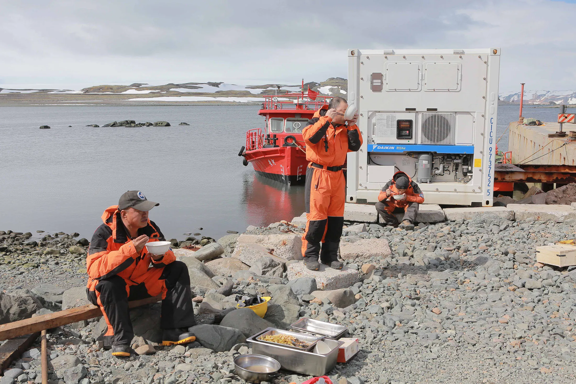 中国研究团队成员在南极长城站的码头上吃午餐,2017年1月。摄影师:荣启涵/新华社/眼线通过Redux然而,共产党领导人也对被视为下一个全球霸主感到畏惧,并且不愿意承担随之而来的费用。他们刻意避免使用“超级大国”这个词,并认为美国的版本在意识形态上是不可接受和过时的。