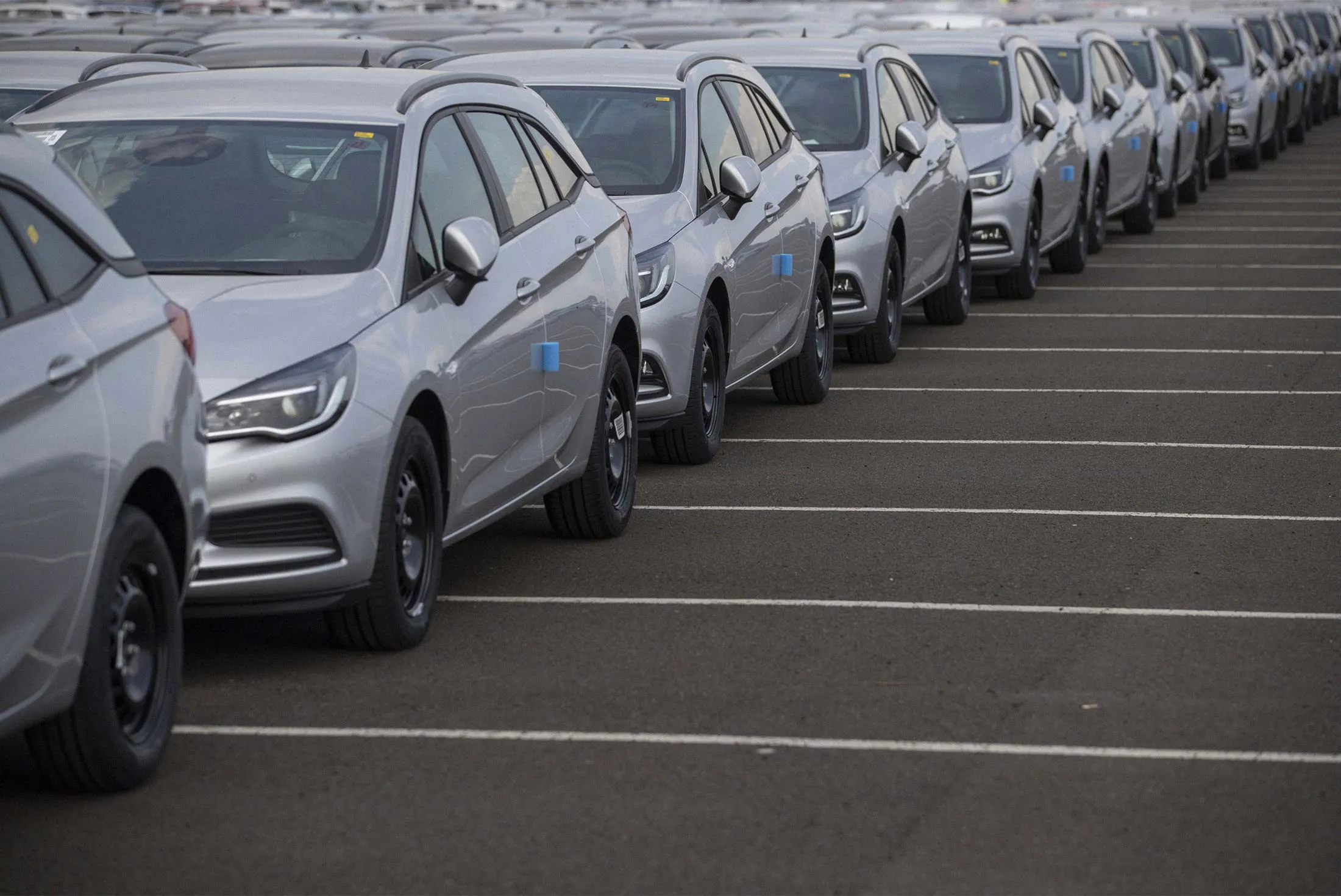 2018年7月19日,英国基林霍尔姆港的码头停车场内的新欧宝汽车。