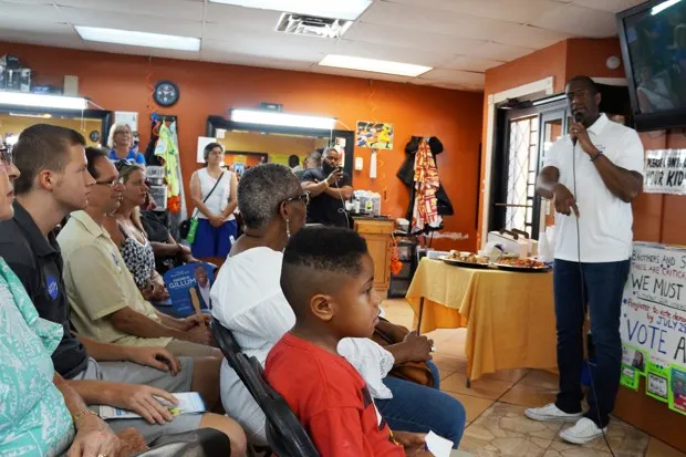 吉勒姆在2018年7月18日的萨拉索塔理发店巡回演讲中与选民交谈。莱蒂西亚·斯坦/路透社在竞选活动中,吉勒姆将他的市长任期框架为他作为州长的预览。作为市长,他与支持枪支的团体进行了超过两年的法律斗争,这些团体起诉塔拉哈西以撤销禁止在城市公园内携带枪支的地方法律。(吉勒姆胜诉。)他成功推动在塔拉哈西“禁止询问犯罪记录”——在求职者中移除犯罪记录的考虑——并努力增加警察与内城区社区之间的沟通。吉勒姆将自己置于进步(而非中间派)民主党的传统中;虽然他得到了美国民主社会主义者的支持,但他并不认同自己是社会主义者。