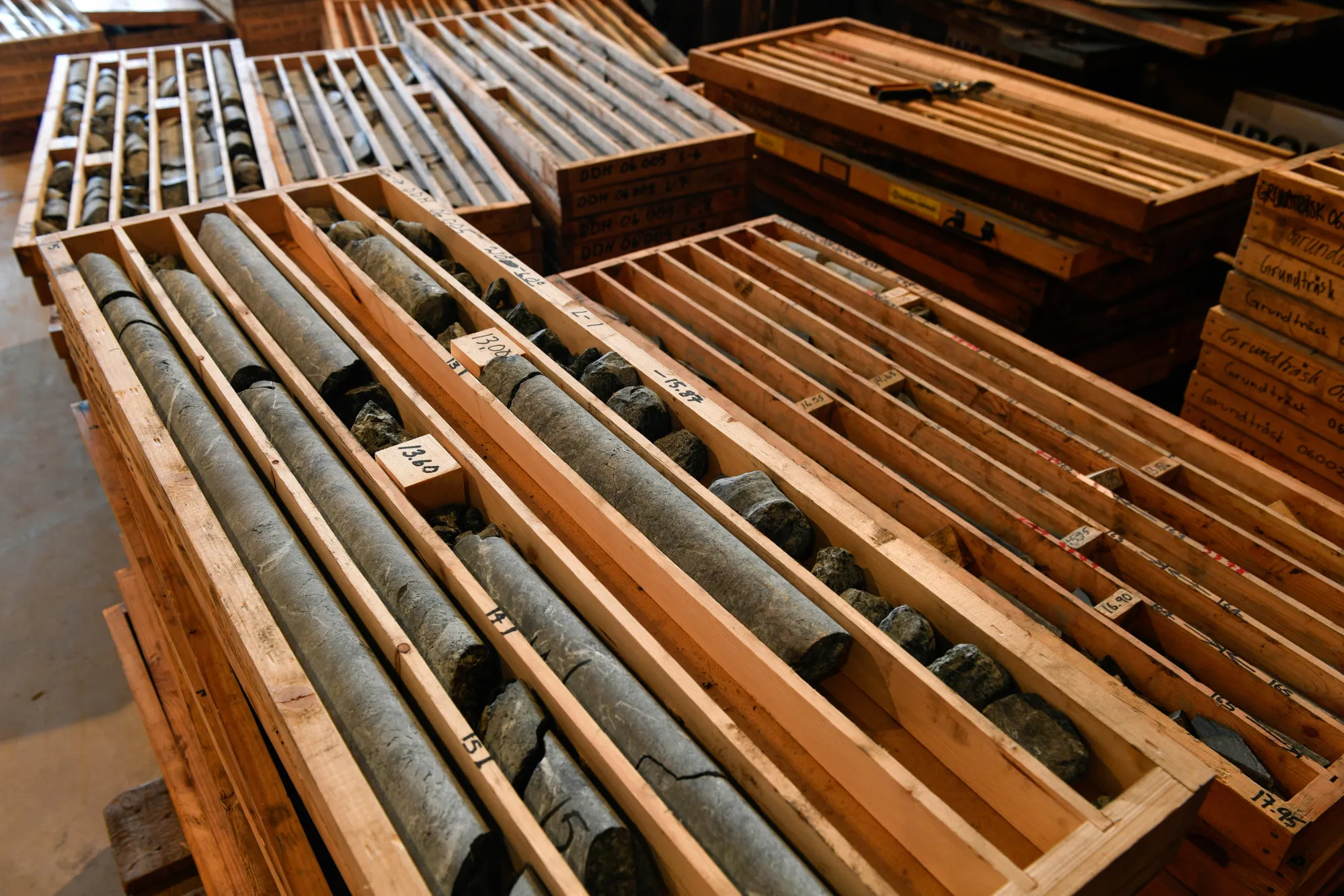一个多世纪以来,这个北欧国家积累了数千个矿石样本——如此之多,以至于如果将它们首尾相连,可以从明尼阿波利斯延伸到墨西哥及更远的地方。它们存放在瑞典地质调查局的钻探核心档案馆,游客每天支付1000克朗(约110美元)来查看存放在一排排木箱中的岩石,希望能发现富含矿物的沉积,如钴,这种蓝灰色矿物让汽车制造商们感到紧张。