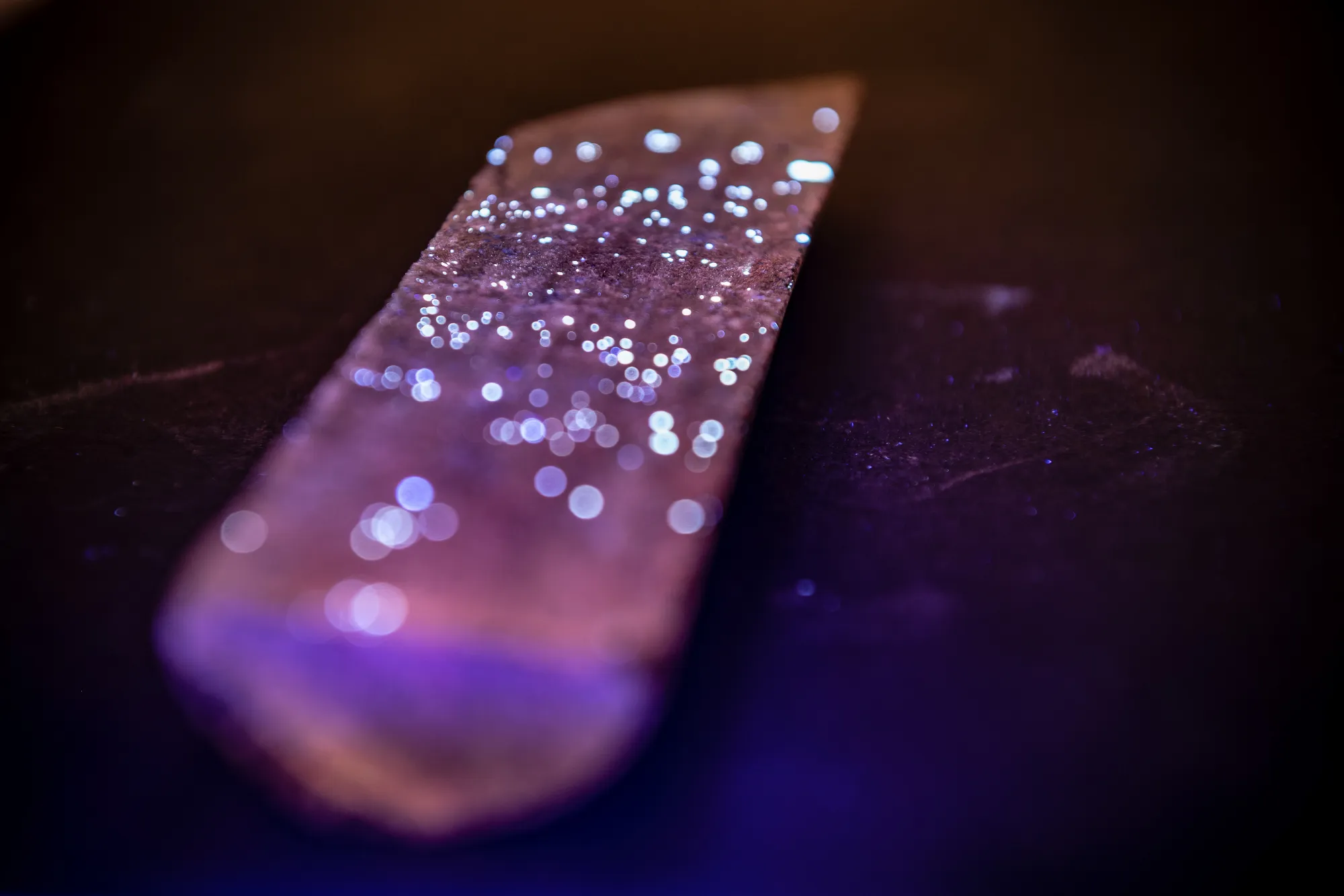 钨矿的沉积在紫外光下发光。