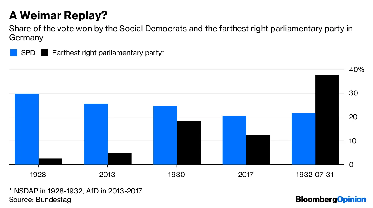 德国人有理由担心 1930年代的重演;德国极右翼的最新崛起与纳粹的崛起相呼应,列昂尼德·贝尔希茨基 写道。