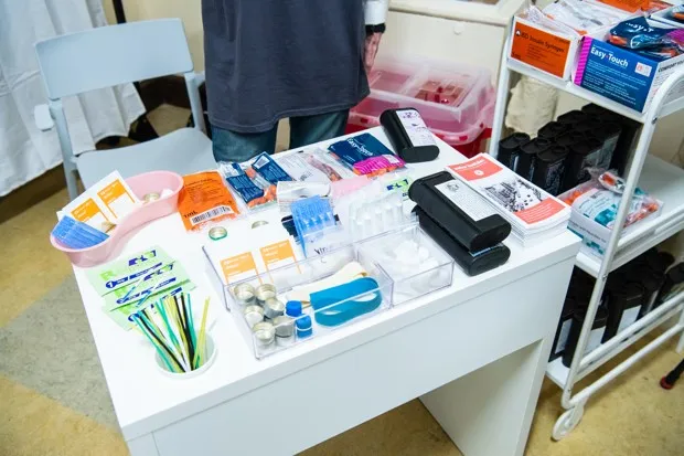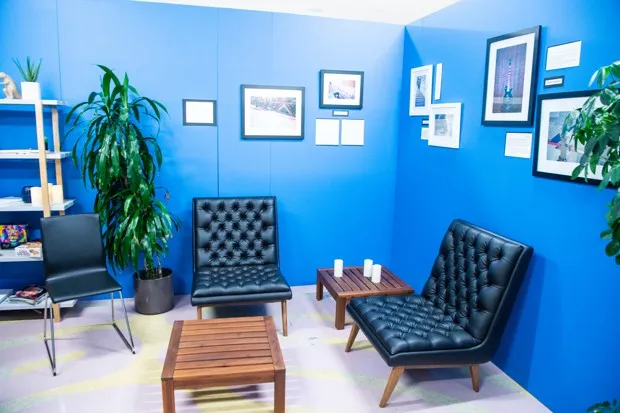 设计由Capitol One Design Pro Bono,一家为非营利组织提供服务的设计公司,展览空间的创建部分是为了帮助缓解社区成员对监督注射设施的恐惧,以及它们的功能。结果是:一个几乎可以在Instagram上分享的空间,营造出一种有意识的欢迎氛围,建造得像一家高档私人医疗诊所。一个房间里有金属凳子供注射时坐;另一个“放松室”则有明亮的蓝色墙壁和舒适的座椅,供人们在注射后放松。在一些表面上,注射器整齐地放在盒子里。在其他地方,有供访客使用的耳机,通过耳机可以听到旧金山吸毒者的故事,既痛苦又充满希望。“你可以称之为销售宣传,”GLIDE减害项目经理保罗·哈金告诉*《旧金山纪事报》* 。