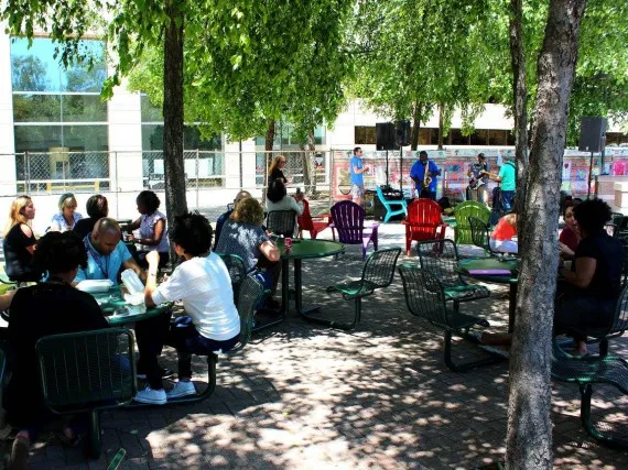 虽然某些设计的固定元素是永久的,但编程并非如此。因此,编程使空间能够适应并服务于多种功能。堪萨斯州威奇托的画廊巷将一个使用不足的小巷转变为一个充满活力的社交场所,利用了设计(公共艺术和小餐桌)和编程(现场音乐、电影之夜、美食节和艺术步行)。当没有安排编程时,小巷能够履行其原始目的——公共通行权。