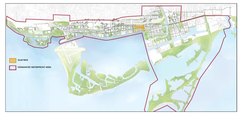 在橙色区域中,小型的12英亩Quayside地块在更大水滨区域的背景下被看到。Sidewalk TorontoSidewalk Labs作为开发商的独特之处显然是吸引全球关注的原因,这个地理范围相对较小的加拿大房地产项目得到了开发商企业兄弟的印记,以及“谷歌城市”将是一个令人惊叹的概念。
